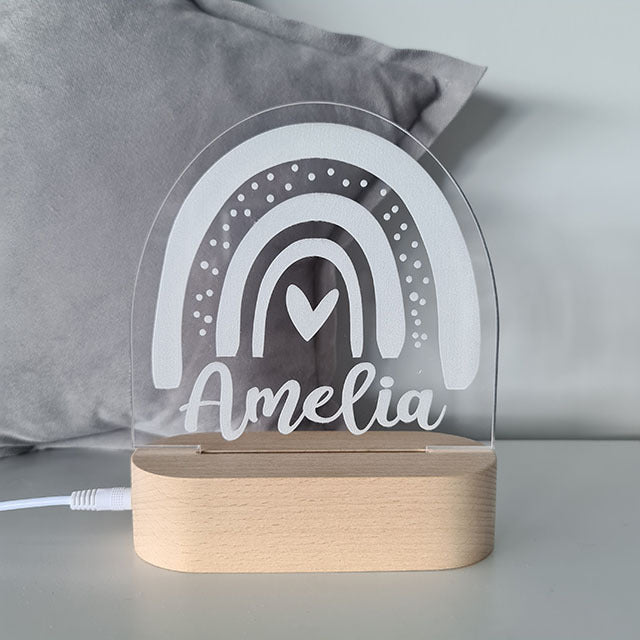 Personalised Kids Night Light With Custom Name - Rainbow Heart