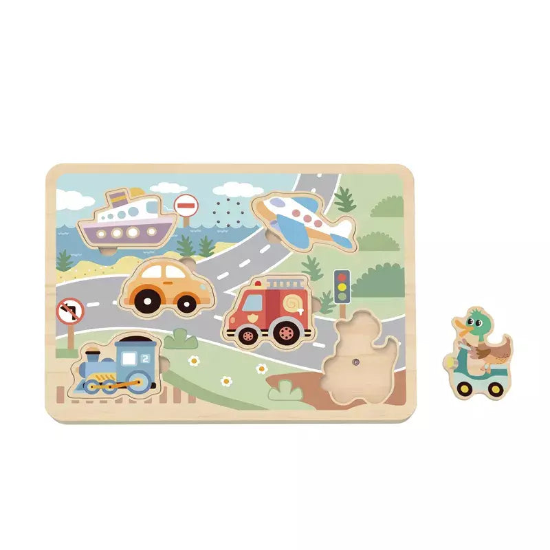 Tooky Toy Wooden Sound Puzzle with Real Human-sounding Voice - Vehicle