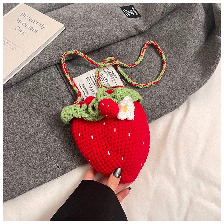 Strawberry Daisy - Handmade Crochet Mini Phone Bag | Cute Crossbody Gift Pouch
