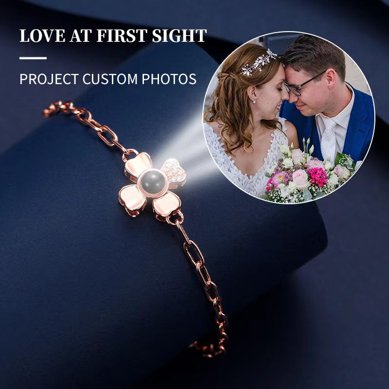Personalized Four Leaf Clover Photo Projection Bracelet