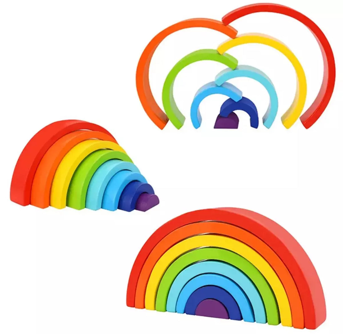 Enjoy this beautifully finished set of 8 rainbow super bright stacking set. Endless play for...