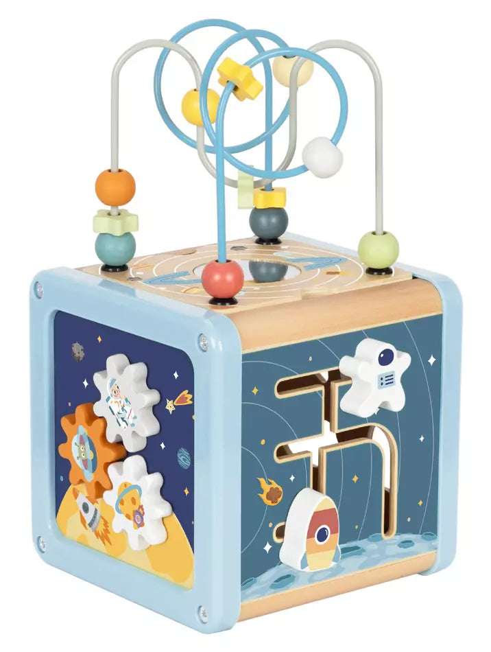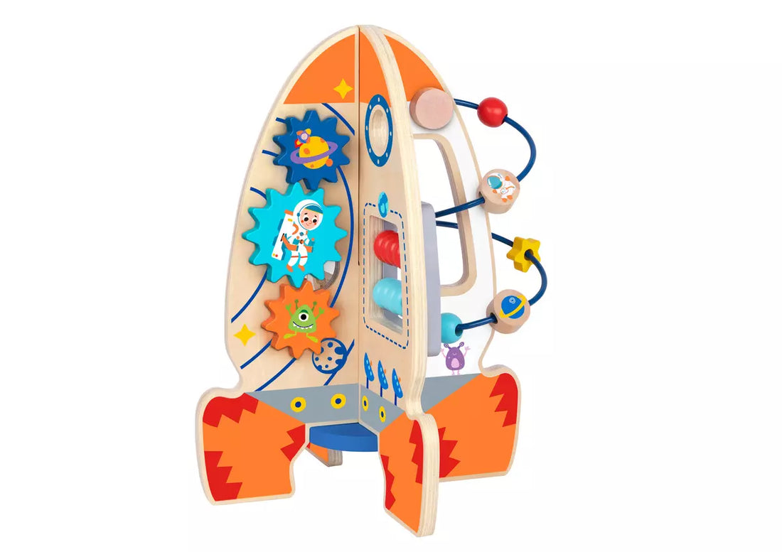 This wooden activity rocket is interesting and engaging. With activities including space themed bead maze,...