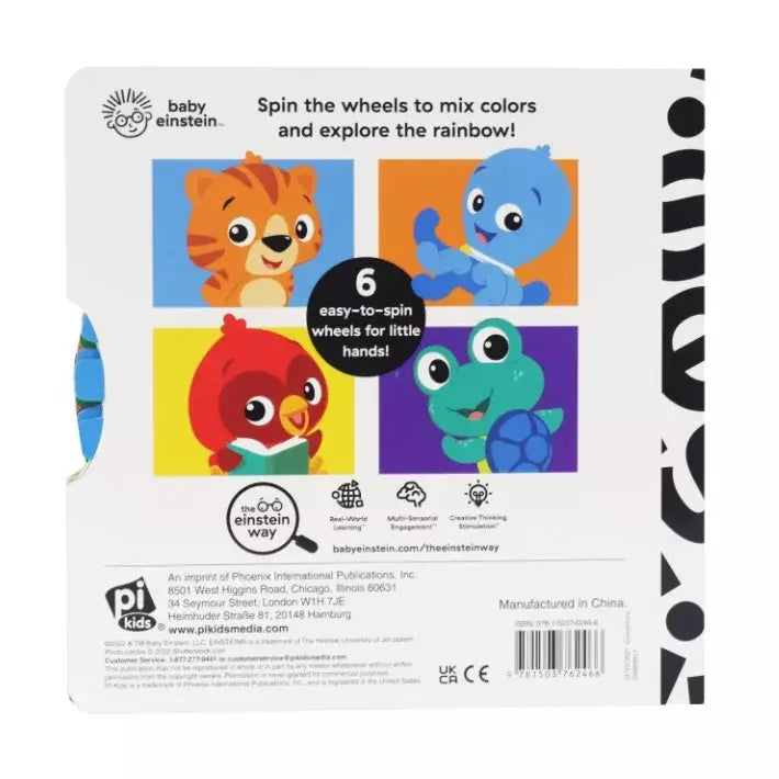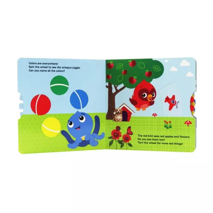 Spin the wheel to mix colors and explore the rainbow! Each page includes an easy to spin and satisfying to use wheel that reveals different colors for different activities within the book. Your little one will love watching the Baby Einstein octopus juggle, helping the panda mix colors, and more with this fun and unique book.
