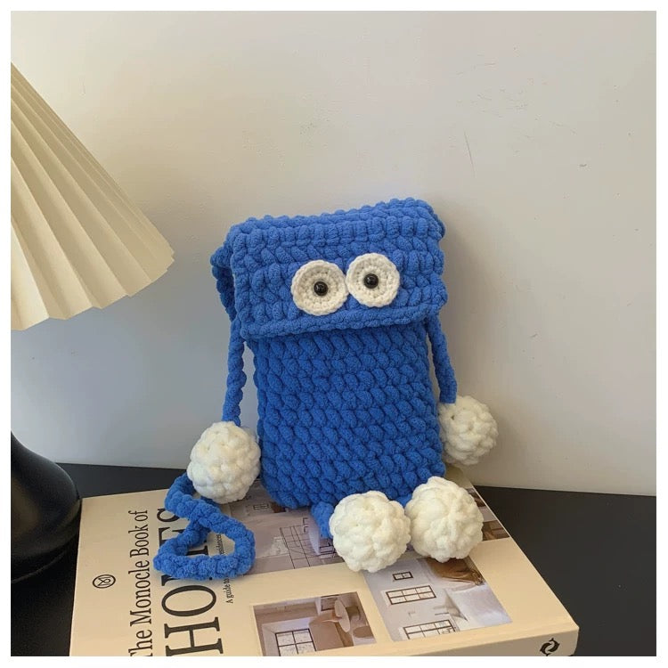 Blue Puff Buddy - Handmade Crochet Mini Phone Bag | Cute Crossbody Gift Pouch