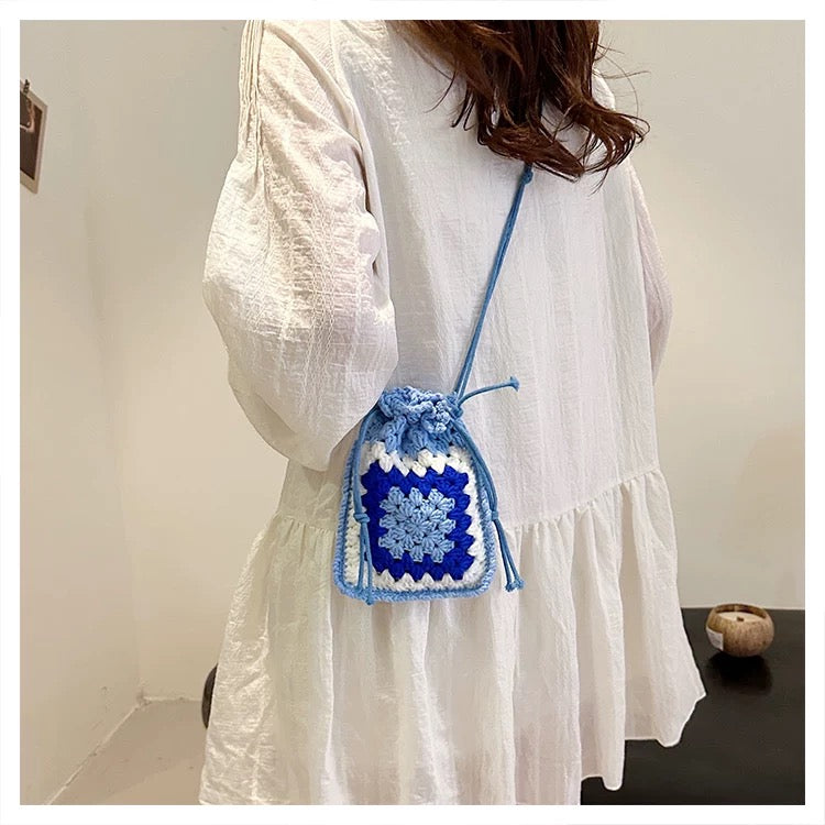 Blue Square Cozy - Handmade Crochet Mini Phone Bag | Cute Crossbody Gift Pouch