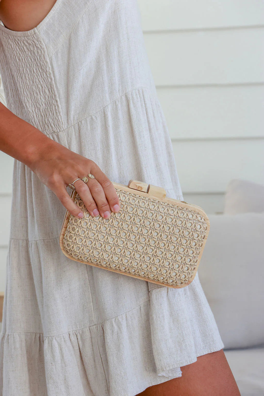 levate your summer look with the Riviera Woven Clutch Bag in natural tones — a statement of effortless coastal elegance.