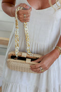 Handcrafted with intricate woven texture and paired with a stunning resin chain strap, this versatile piece can be styled as a shoulder bag or carried as a clutch. Lightweight yet structured, it’s the perfect balance of relaxed luxury and practicality — ideal for beach weddings, brunch dates, or gifting.