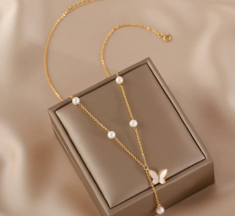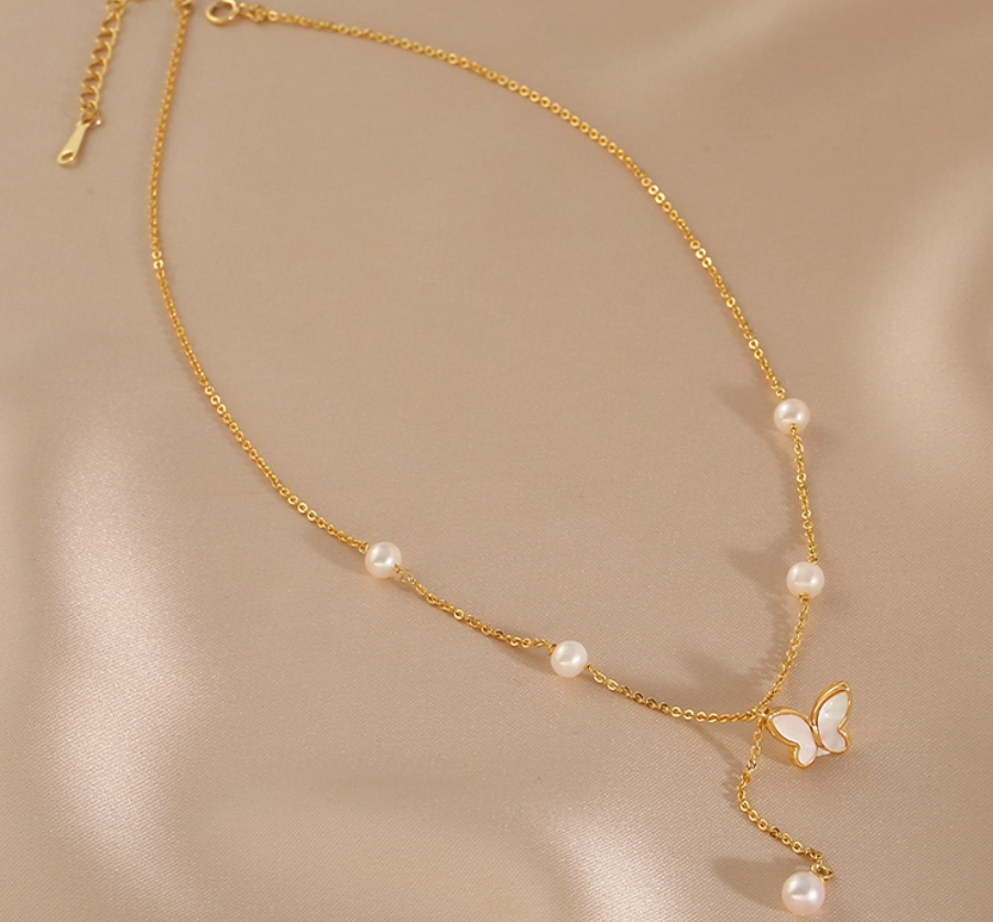 Handmade Butterfly Pearl Necklace – Natural Freshwater Pearls