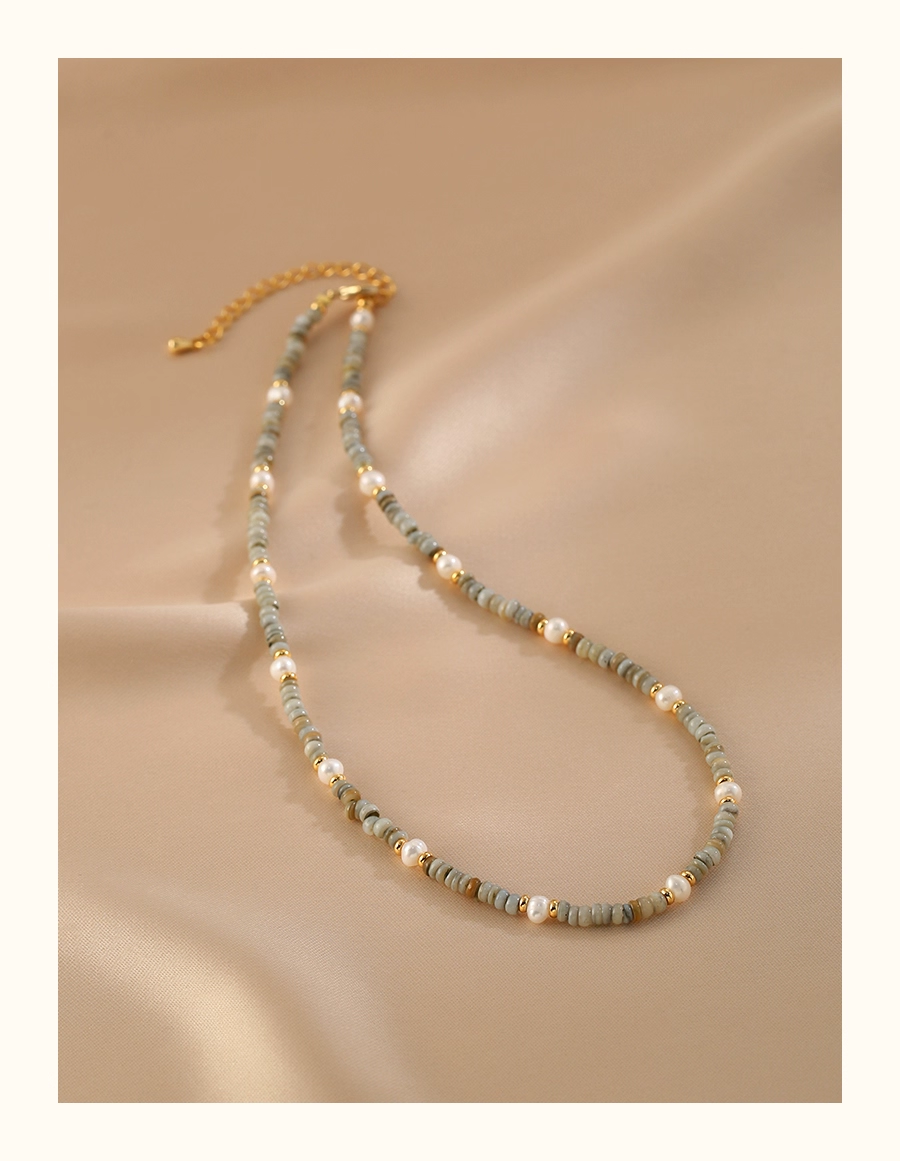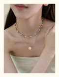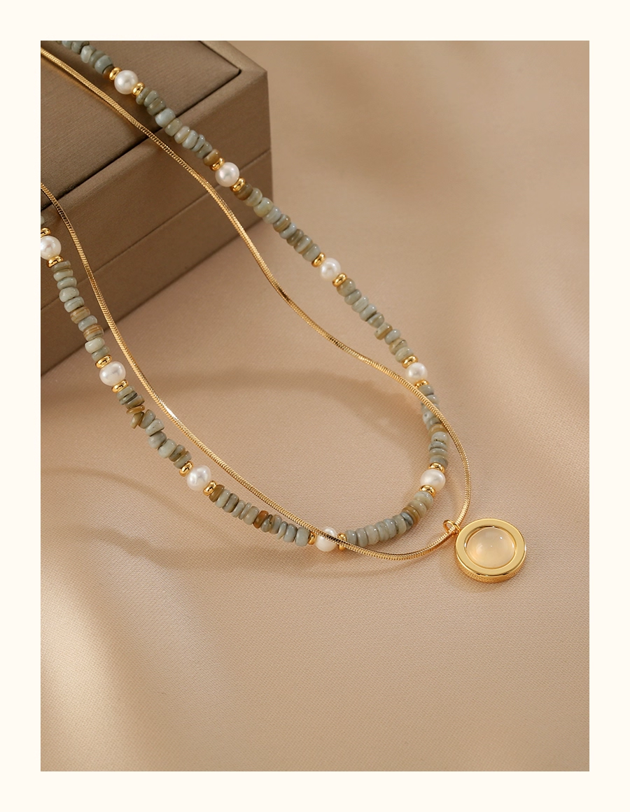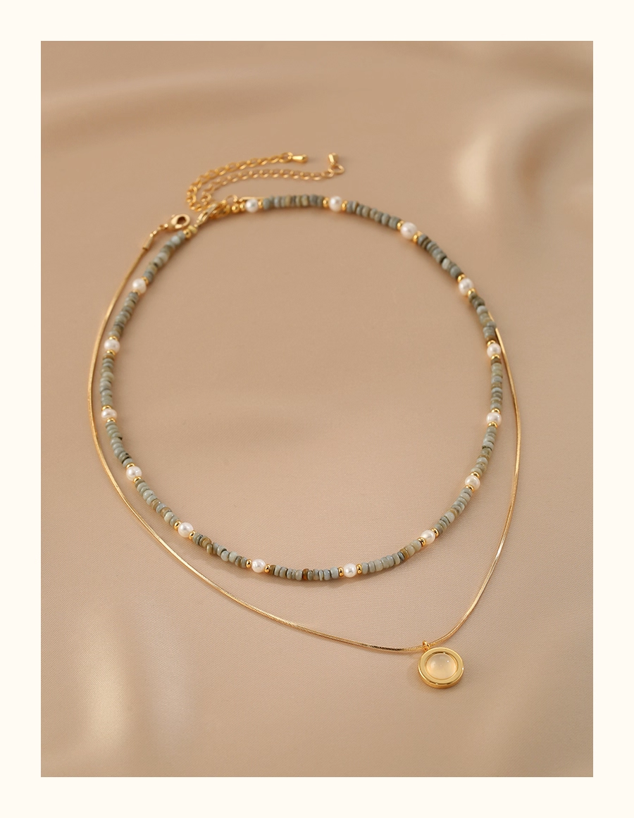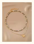 This handmade layered necklace combines natural pearls, soft-toned colour stones, and a minimalist round pendant to create a modern yet elegant look. Each bead is carefully selected and hand-strung, giving the necklace a refined texture and a unique artisanal touch. The double-layer design makes it easy to style—wear it alone for a subtle feminine look or layer it with other pieces for a chic everyday style.
