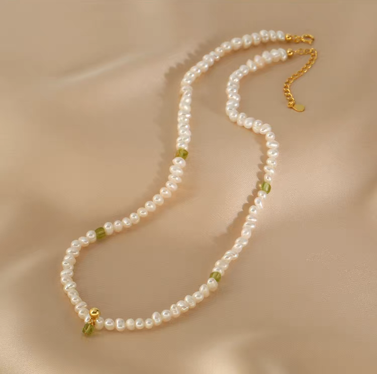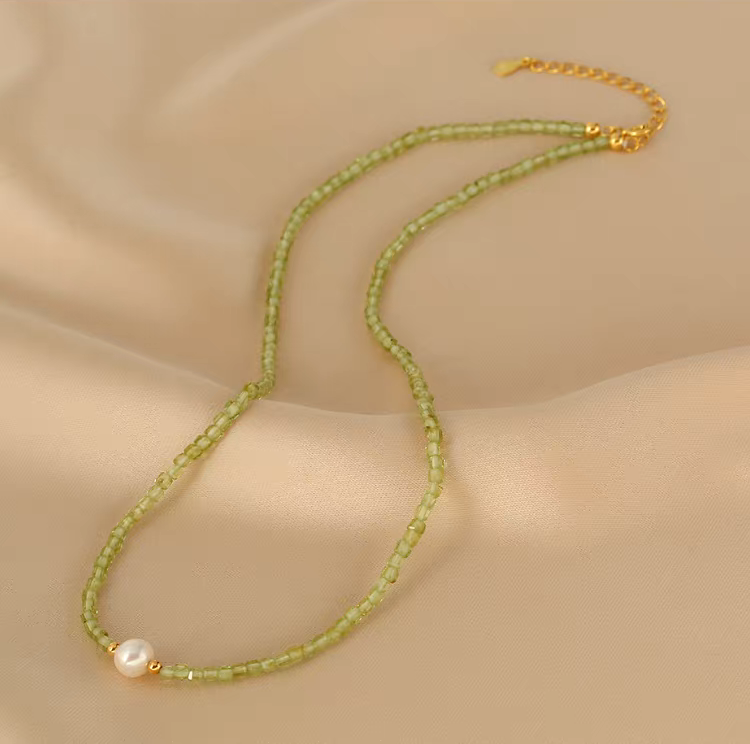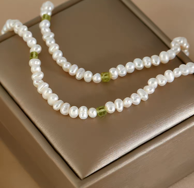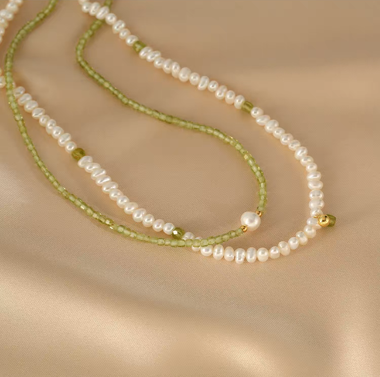 Handmade S925 Silver Double-Layer Pearl & Peridot Necklace