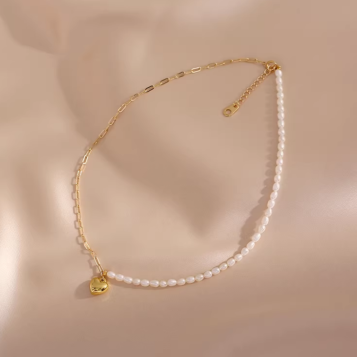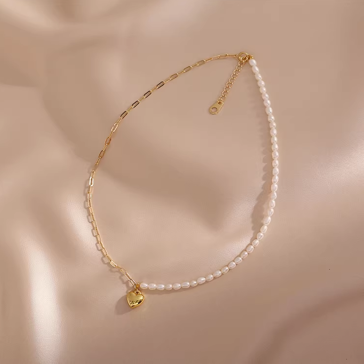 This handmade heart pearl necklace is thoughtfully crafted to celebrate love, warmth and everyday elegance. Featuring a delicate heart-shaped charm paired with luminous freshwater pearls, the asymmetric design creates a modern yet timeless look that feels effortlessly personal.