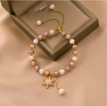 Handmade Snowflake Baroque Pearl Bracelet – 14K Gold Plated Adjustable Bracelet