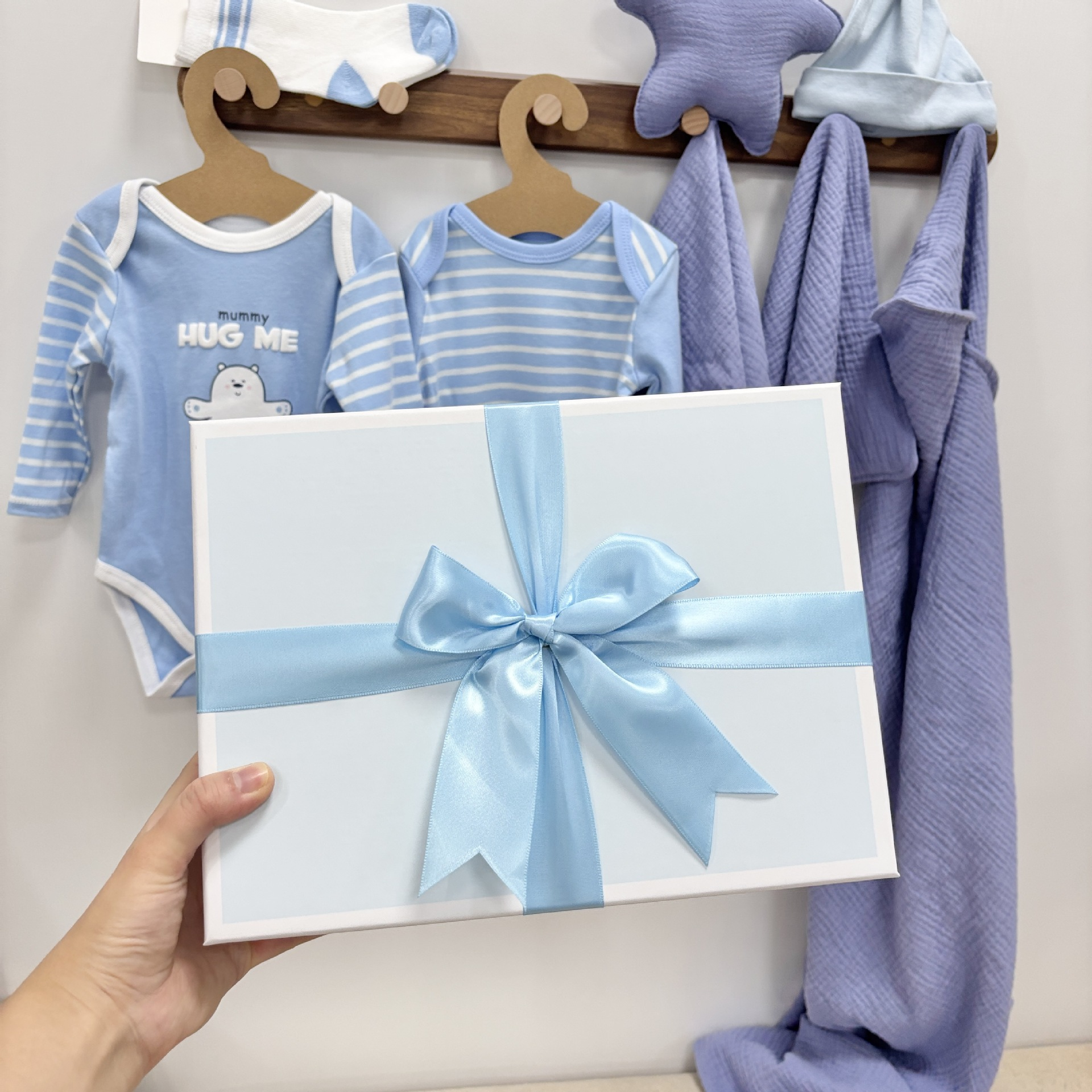 Welcome a little one with this charming baby boy gift set in soft blue tones, combining comfort, practicality, and style. Thoughtfully packaged in a premium gift box with ribbon, it’s the perfect present for baby showers, newborn celebrations, or workplace baby gift baskets.