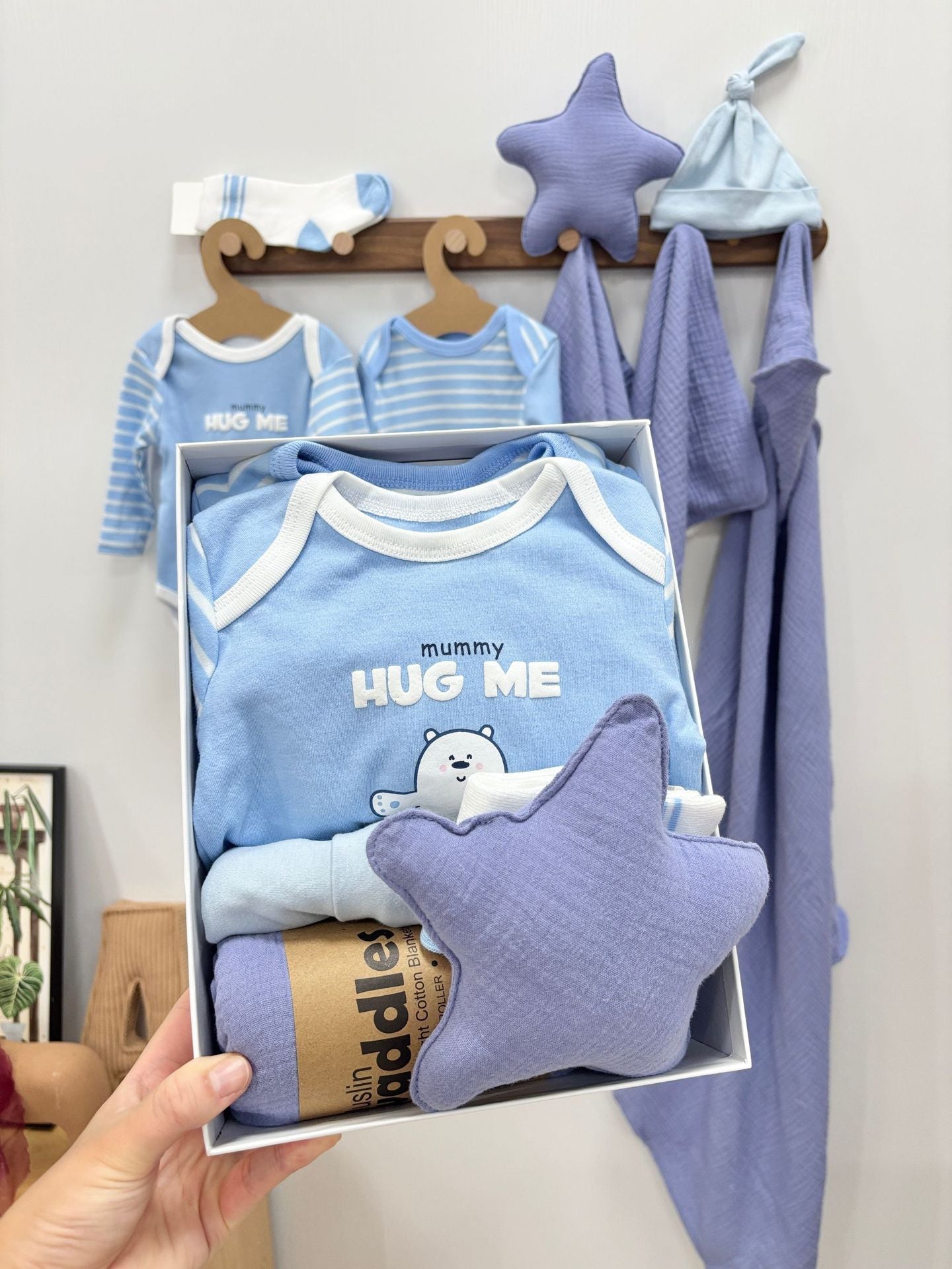 'Hug Me' Newborn Baby Boy Gift Set 8-Piece Gift Box