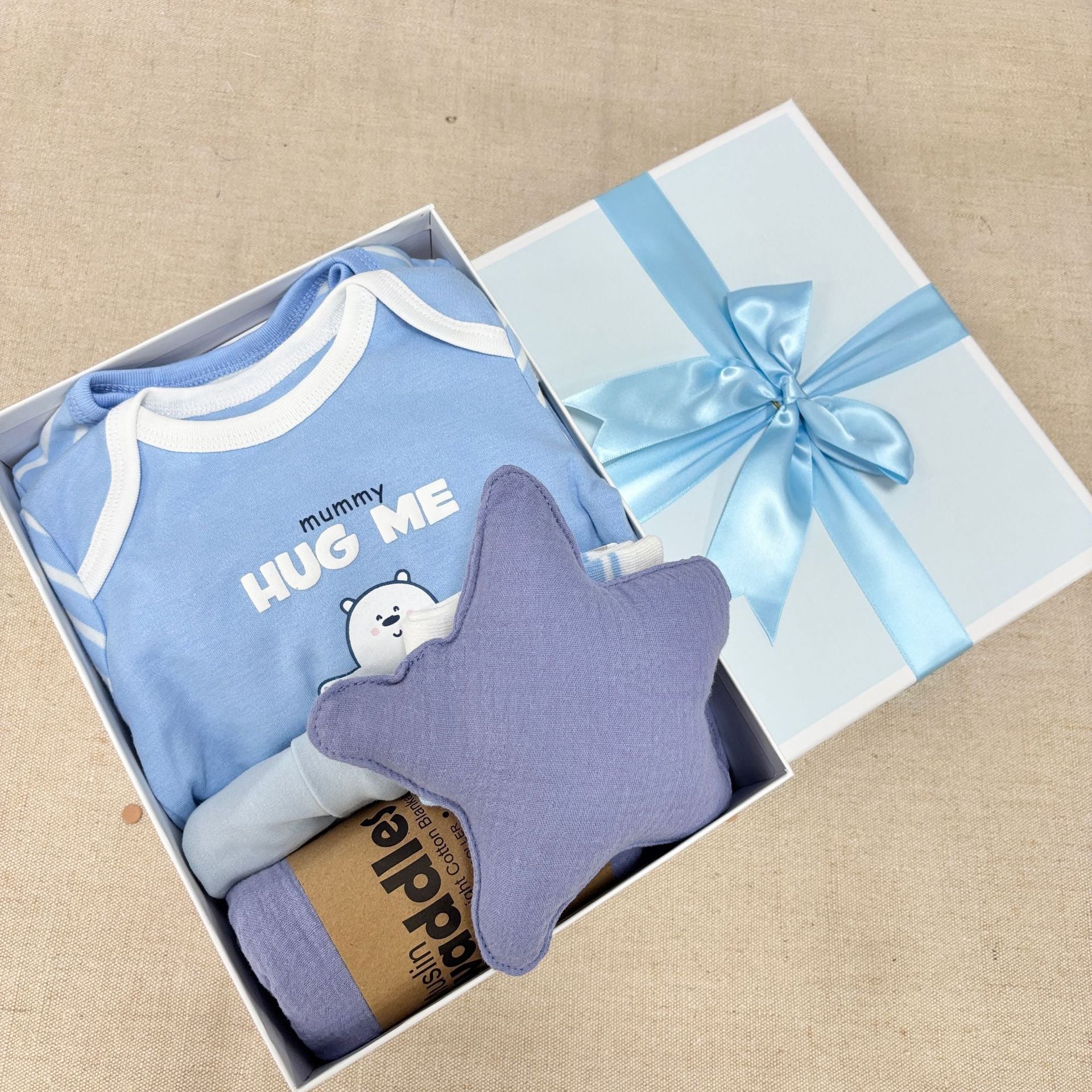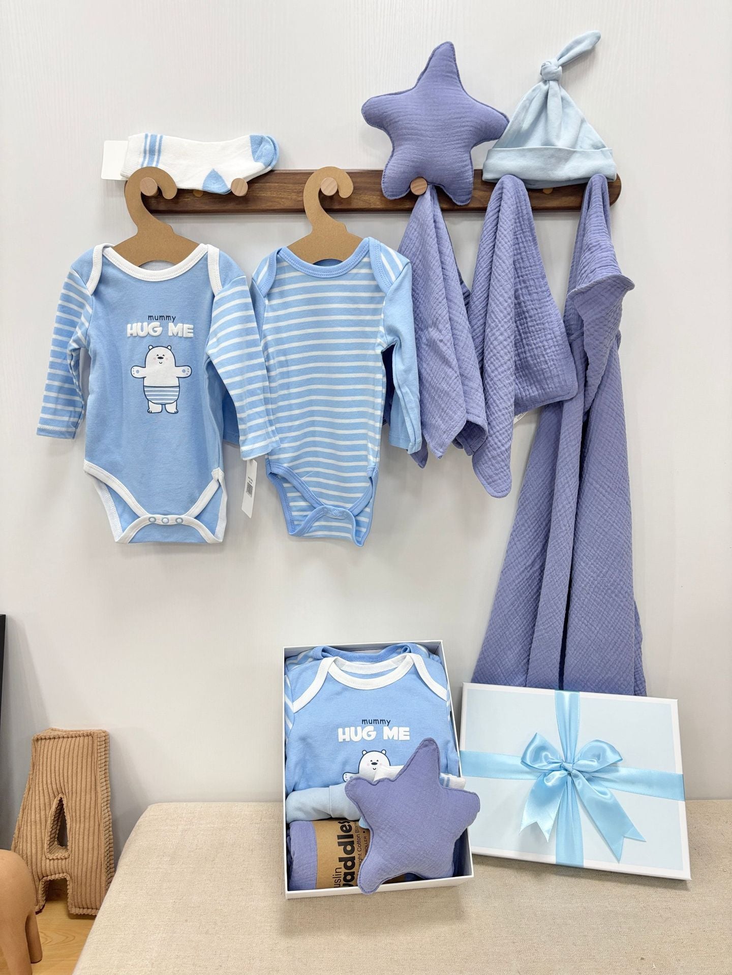 A thoughtful and practical baby boy gift set – ideal for new parents, baby showers, and corporate baby gift baskets.