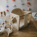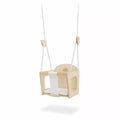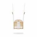 Two wooden rope locks, nylon hanging straps and carabiners ensure the swing is optimally stable and child-safe (double-check all knots and locks are secure before using). Handmade using birchwood, beechwood and rope; and finished with nontoxic water-based lacquer. The Baby Swing is outfitted with a seat cushion and is friendly for both indoor and outdoor entertainment, but it should always be stored inside when not in use. Never leave your child unattended while playing!