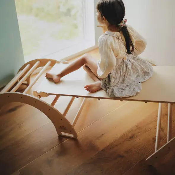 Create a mini playground for your little one with the Small Triangle, Arch and Slide/Ramp. These great, basic pikler pieces will help your little one to grow a life-long love for adventure, as they learn how to climb and explore.