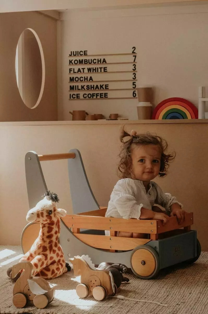 Kids have have a blast putting their toys inside and taking them for a stroll. Whether indoors or outdoors, the Kinderfeets Cargo Walker is the perfect way to introduce little ones to walking. Before you know it, they’ll be running!