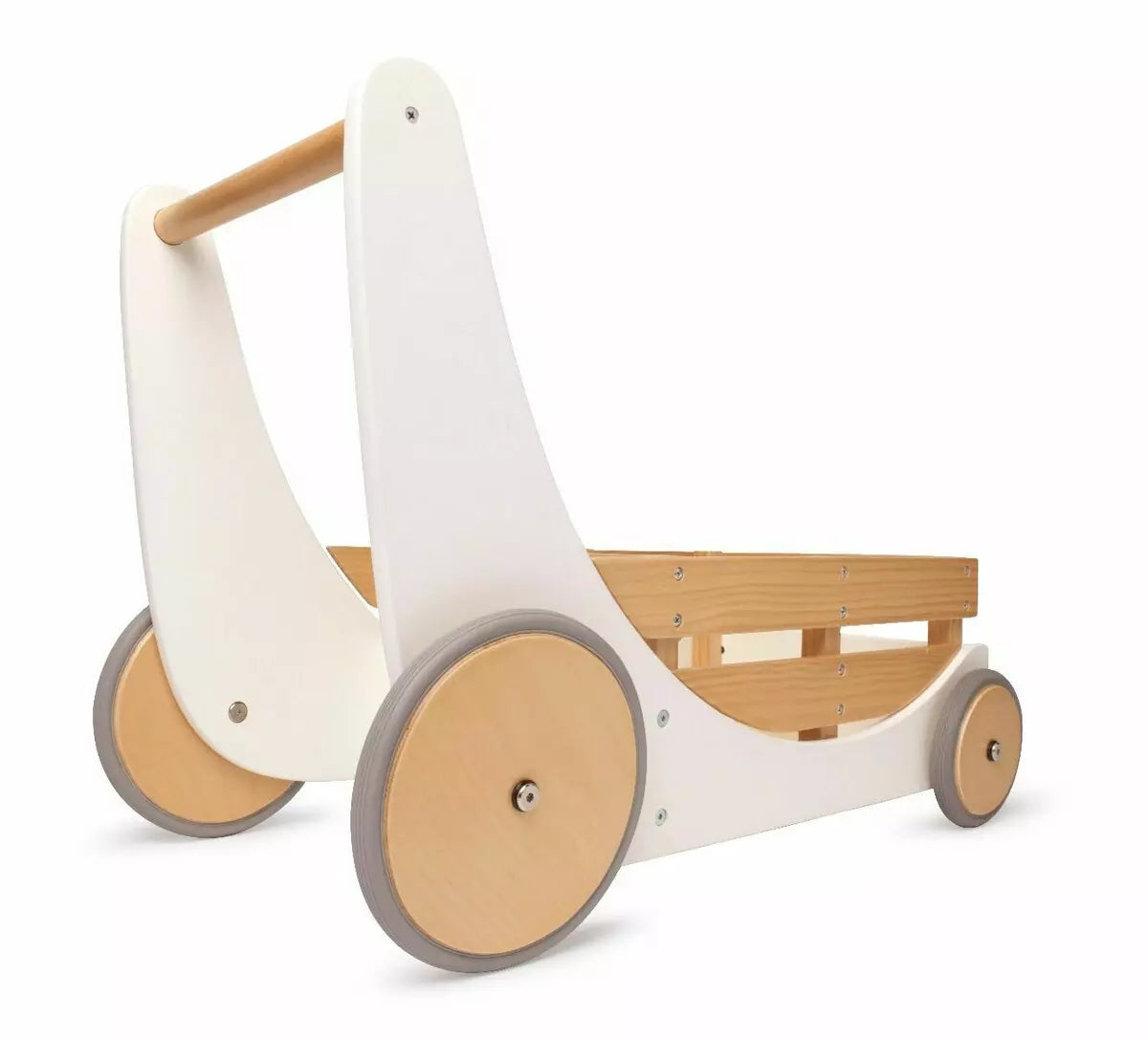 A toy that doubles as two was our inspiration for creating our Kinderfeets Cargo Walker. Stylish Dutch design, the beech wooden sides are painted beautifully in white or red that accents the natural stained wooden rack.