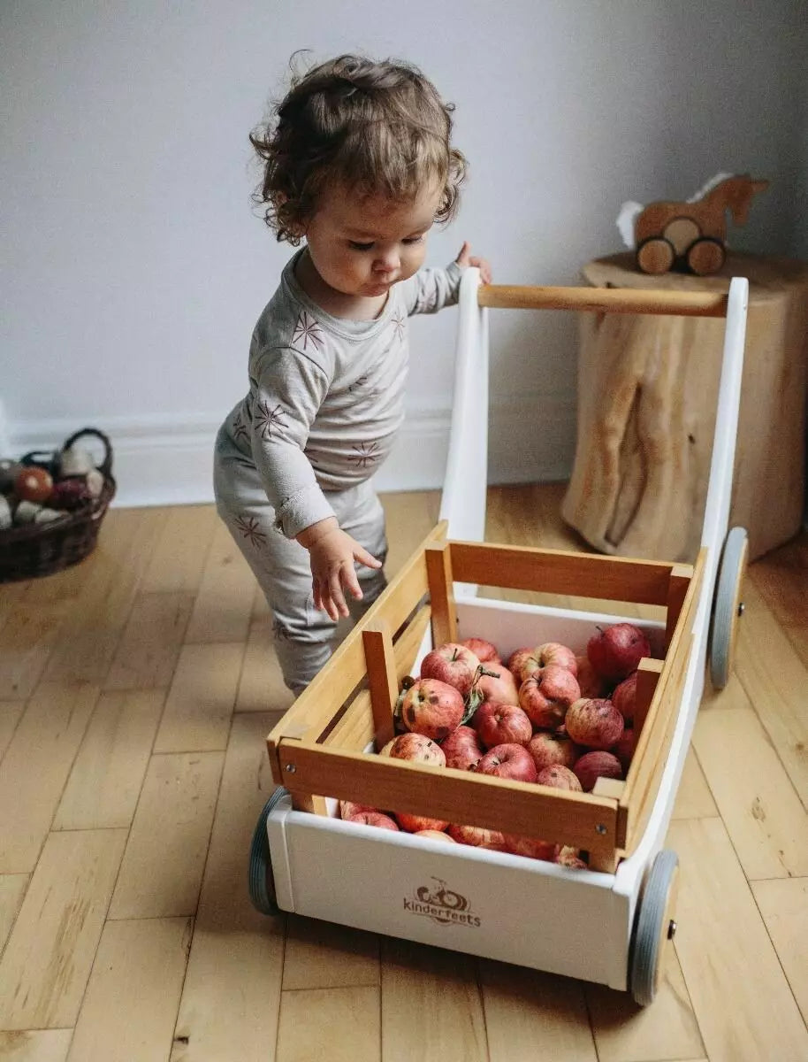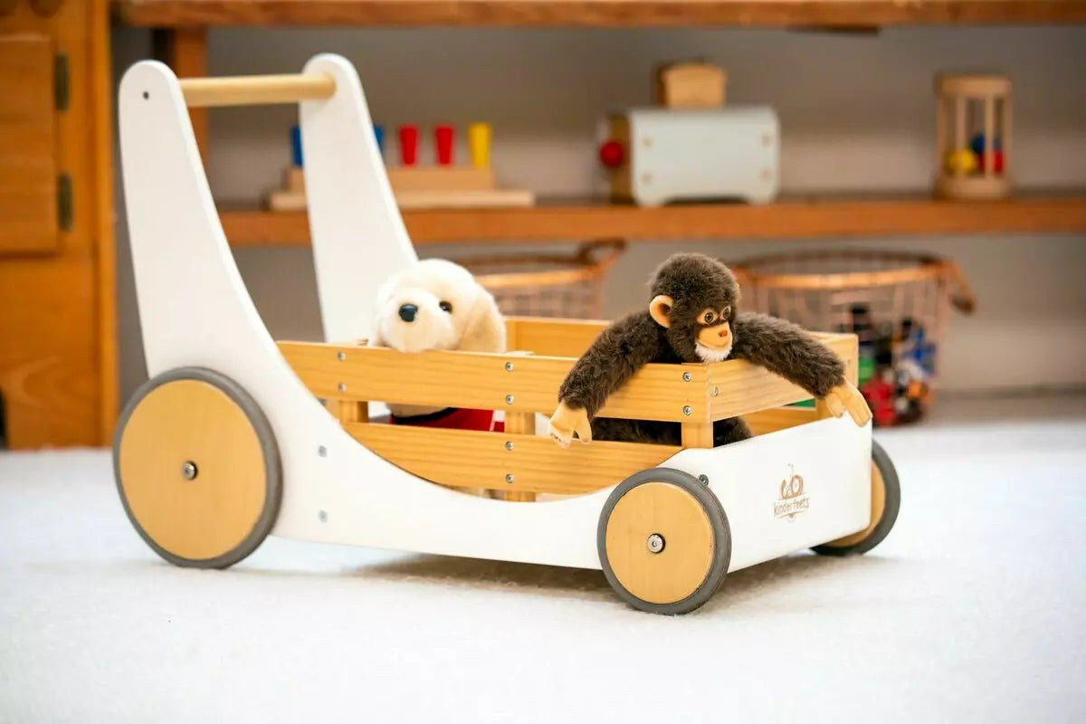 Kids have have a blast putting their toys inside and taking them for a stroll. Whether indoors or outdoors, the Kinderfeets Cargo Walker is the perfect way to introduce little ones to walking. Before you know it, they’ll be running!