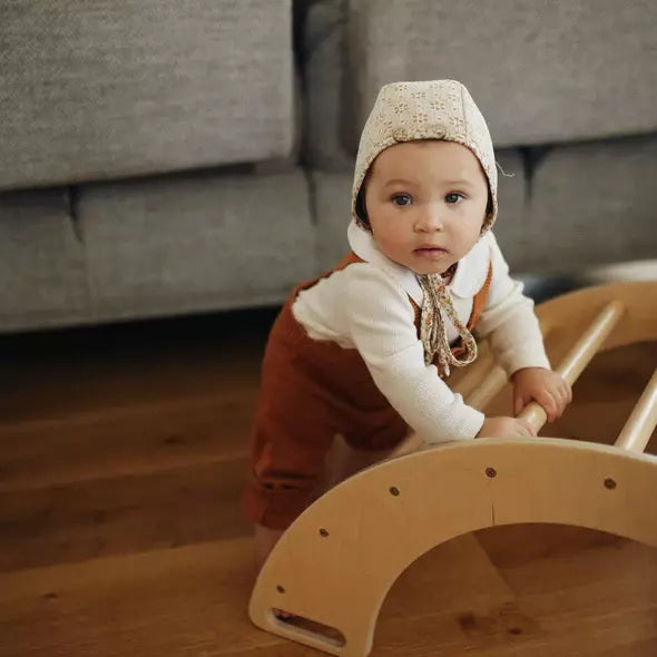 The Pikler Rocking & Climbing Arch serves as both a teeter-totter and climbing device for active toddlers. It's a great way to start a pikler playground in your home.