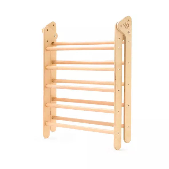 The Medium Pikler Triangle features two sides with climbing dowels and is collapsible for easy storing. It's a great option for smaller spaces and little walkers just learning to climb.