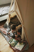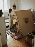 Assemble the tent in your backyard or playroom and get creative decorating it with cushions, blankets, and your favourite things. A rounded side window provides natural light and a connection to the outside.