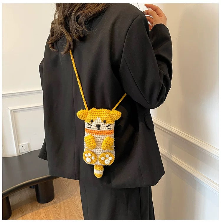 This adorable handmade crochet phone bag is carefully crafted with love and attention to detail. Each piece features a charming woven texture, making every bag slightly unique — no two are exactly the same.