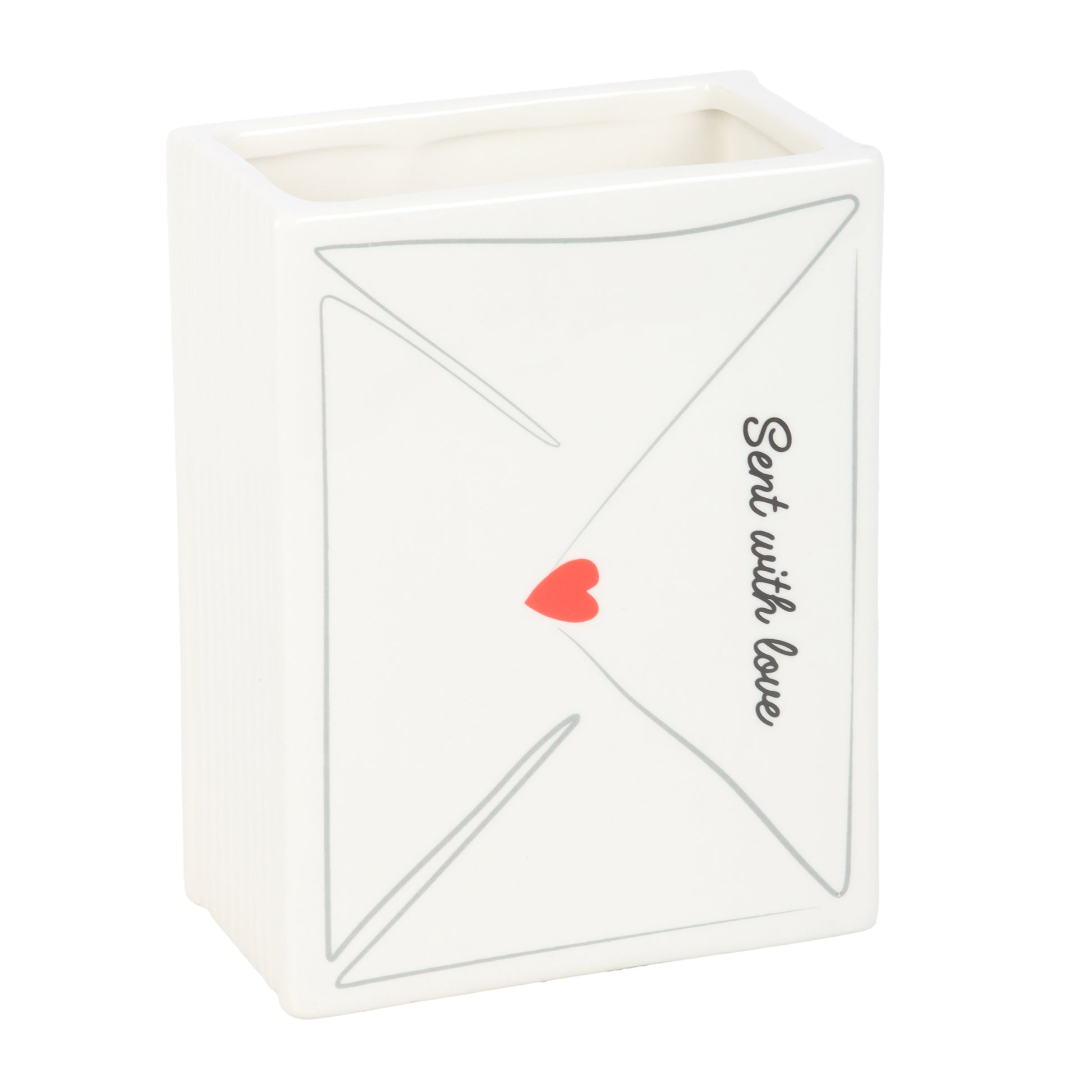 Add a touch of romance and sweetness to any space with this love letter ceramic vase, designed to look like a beautifully sealed envelope stamped with a tiny red heart. Its minimal, charming design makes it perfect for displaying dried flowers, fresh blooms, or as a decorative piece on a bedside table, shelf, or desk.