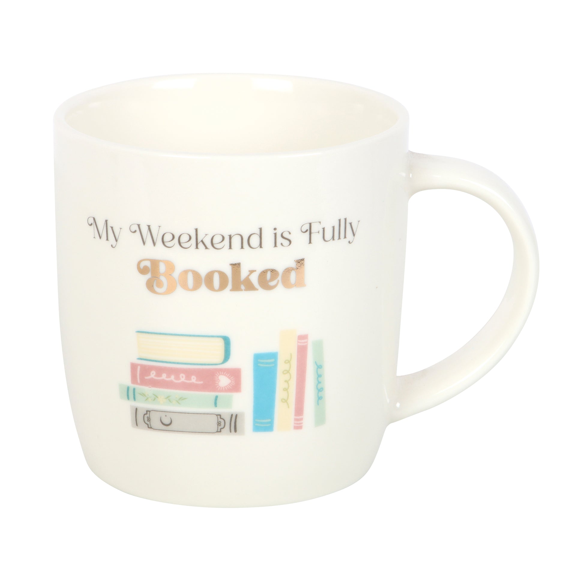 Celebrate your love for books (and quiet weekends) with this charming My Weekend Is Fully Booked Mug.