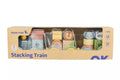 Children will delight in stacking the vibrant blocks onto the train, discovering an array of colours, patterns, and shapes along the way. With charming animal heads adorning the train and bright blocks in a soothing muted color palette, this set captivates the senses and fosters creativity.