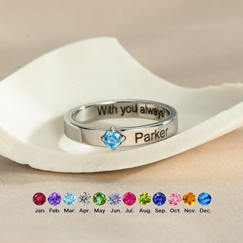 Personalised Birthstone Name Ring – Custom Engraved Gift For Her