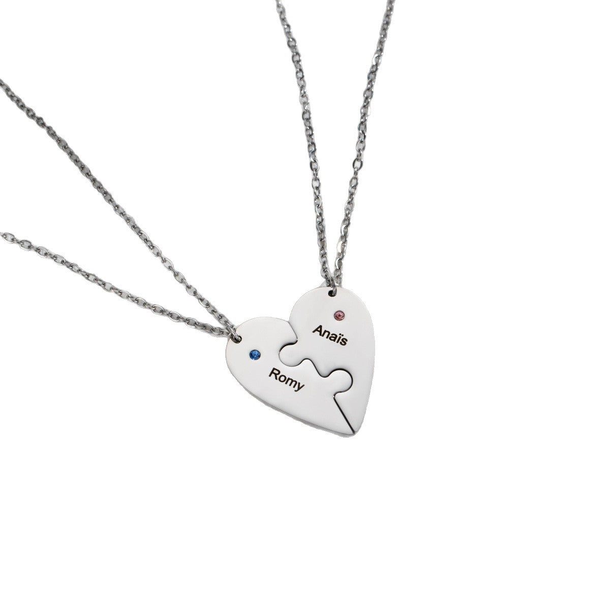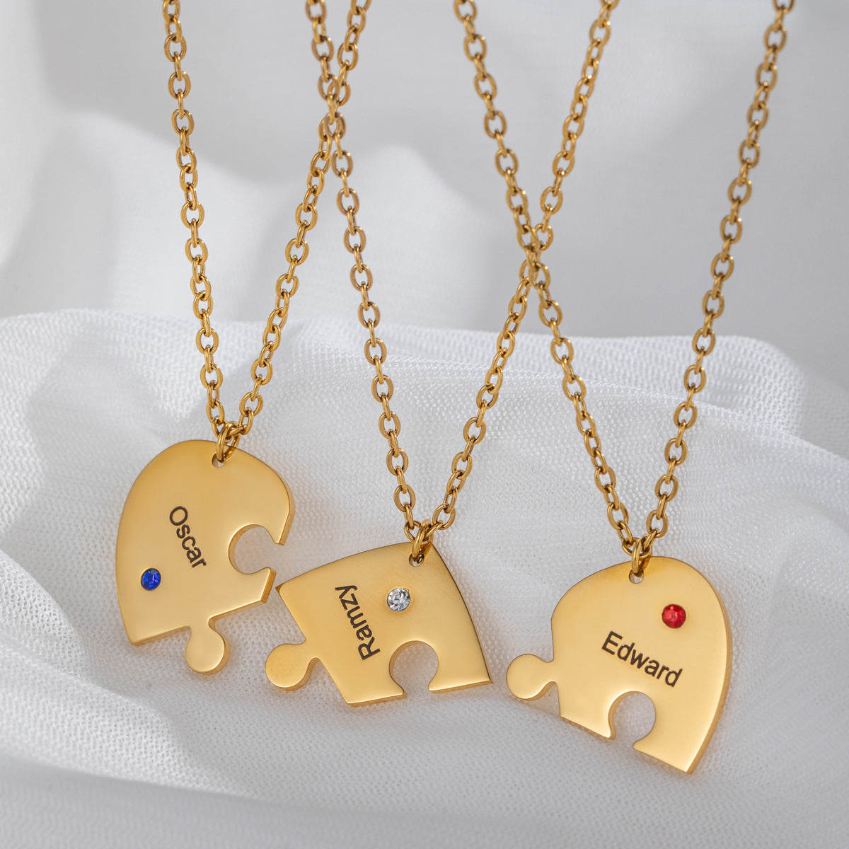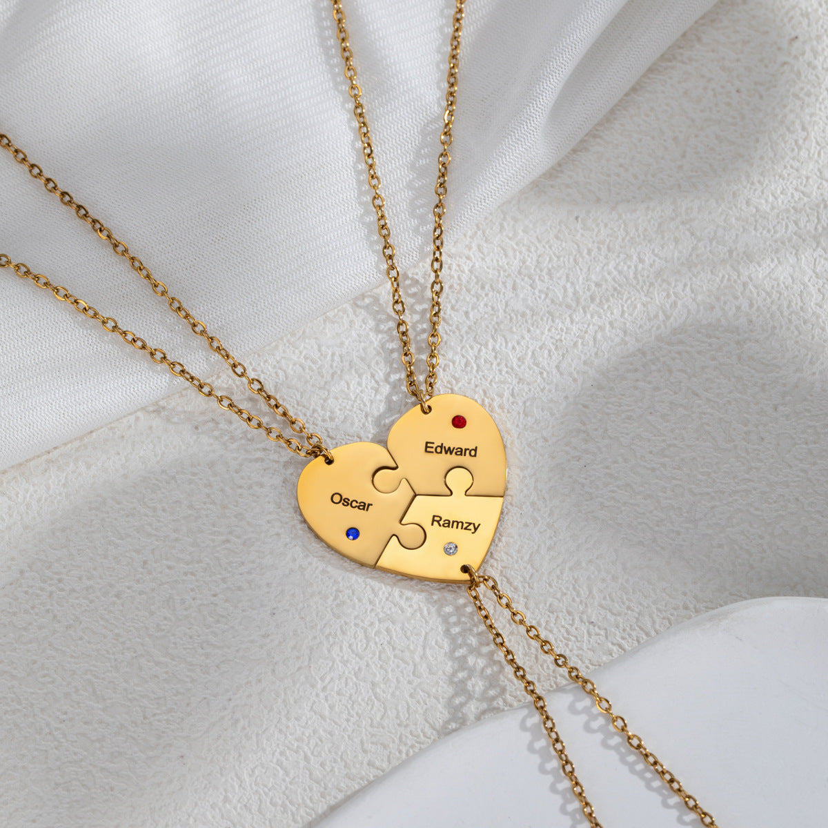 Celebrate love, family, and friendship with our Personalised Puzzle Heart Necklace, a heartfelt piece that beautifully connects you and your loved ones. Each heart pendant can be custom-cut into 2 or 3 interlocking pieces, engraved with names and adorned with birthstones representing each special person in your life.