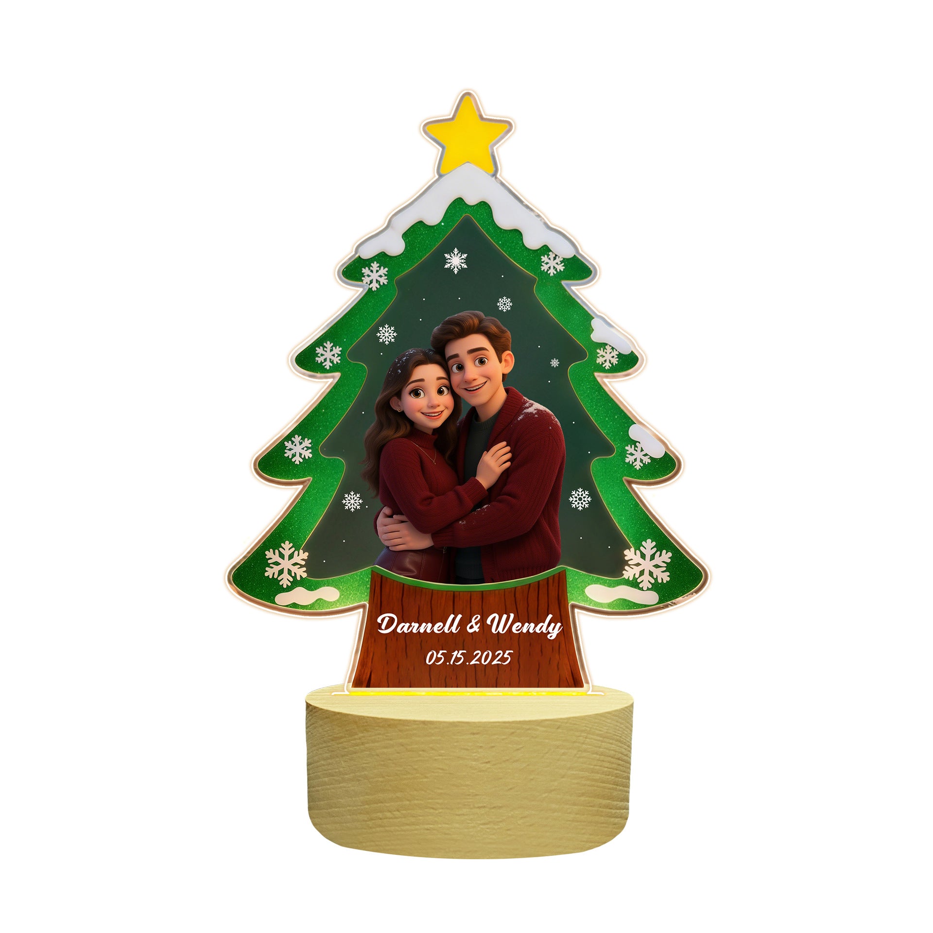 Personalised Pixar-Style Christmas Couple Night Light – Custom LED Lamp for Her