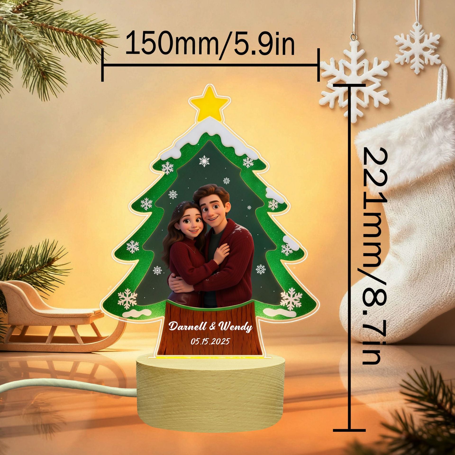 Celebrate the warmth of the festive season with this personalised Christmas tree couple night light. Featuring your favourite photo, couple names and a special date beautifully illuminated among snowy festive details, this glowing décor piece brings joy, romance and Christmas magic to any home.
