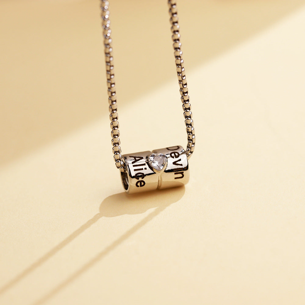 Personalised Cylinder Necklace – Custom Engraved Roller Pendant with Crystal