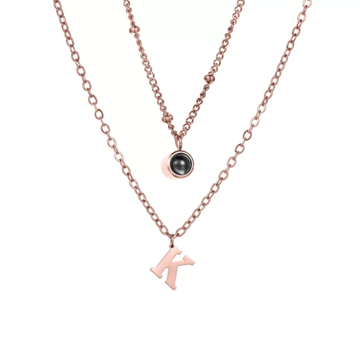 Personalised Double Layer Initial Necklace with Photo Projection