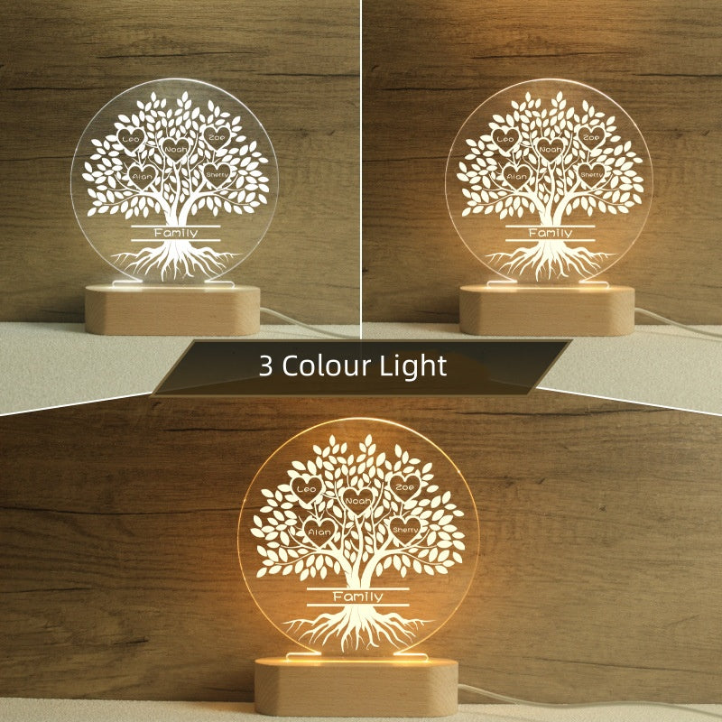 Soft LED lighting creates a warm, ambient glow—ideal for living rooms, bedrooms, or as a thoughtful night light. Whether you're honouring parents, children, grandparents, or the whole extended family, this personalised piece is a lasting tribute to those who matter most.