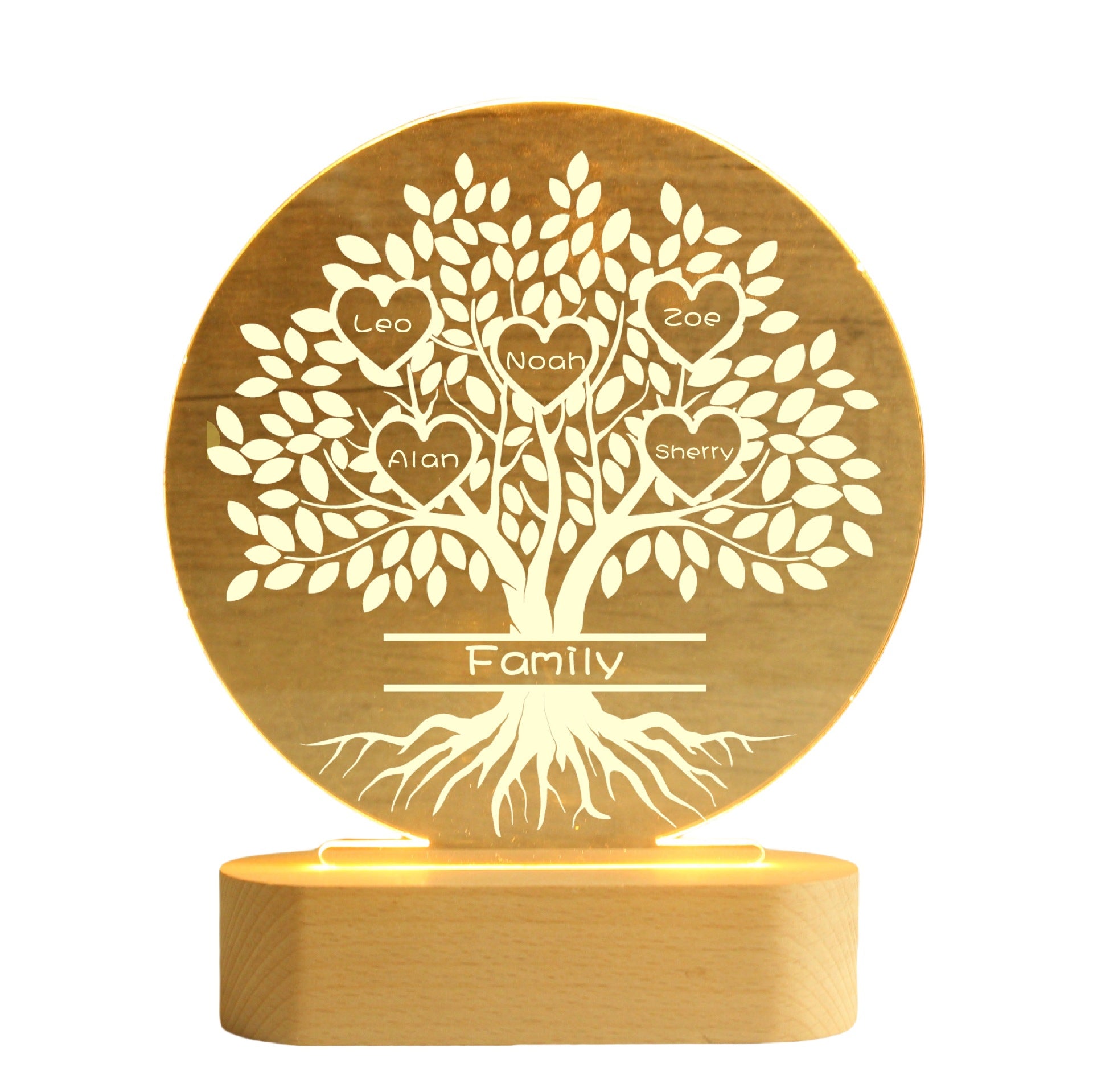 Celebrate the roots and branches of your family with our Personalised Family Tree Night Light, a meaningful piece of decor that beautifully symbolises love, connection, and heritage. Custom engraved with the names of your loved ones, this heartwarming design features a glowing family tree, making it a perfect centrepiece for any home.