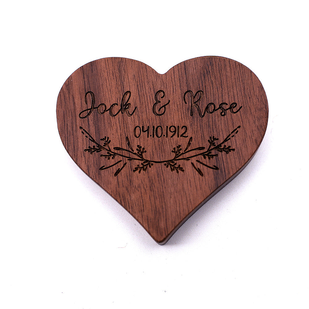 Celebrate love with this personalised heart walnut jewellery and ring box—thoughtfully designed as a keepsake for weddings, engagements, anniversaries or proposal gifts. Made from rich walnut wood with a smooth finish, it features your custom engraving on the lid for a meaningful and timeless touch.
