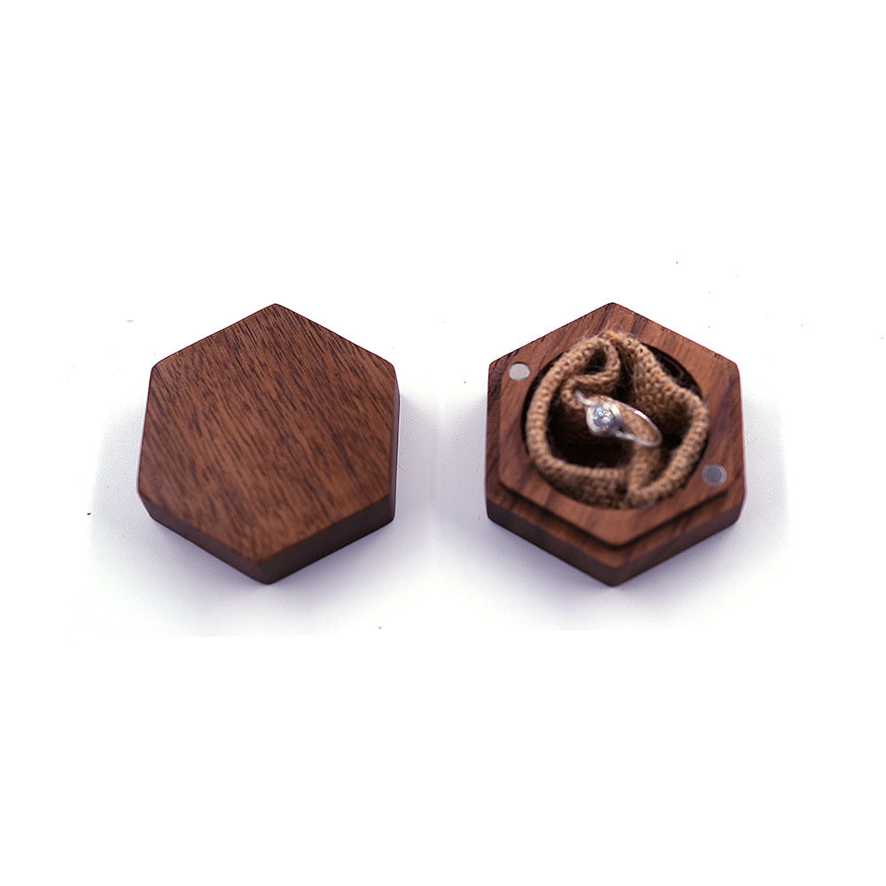 Personalised Hexagon Walnut Ring Box – Custom Engraving