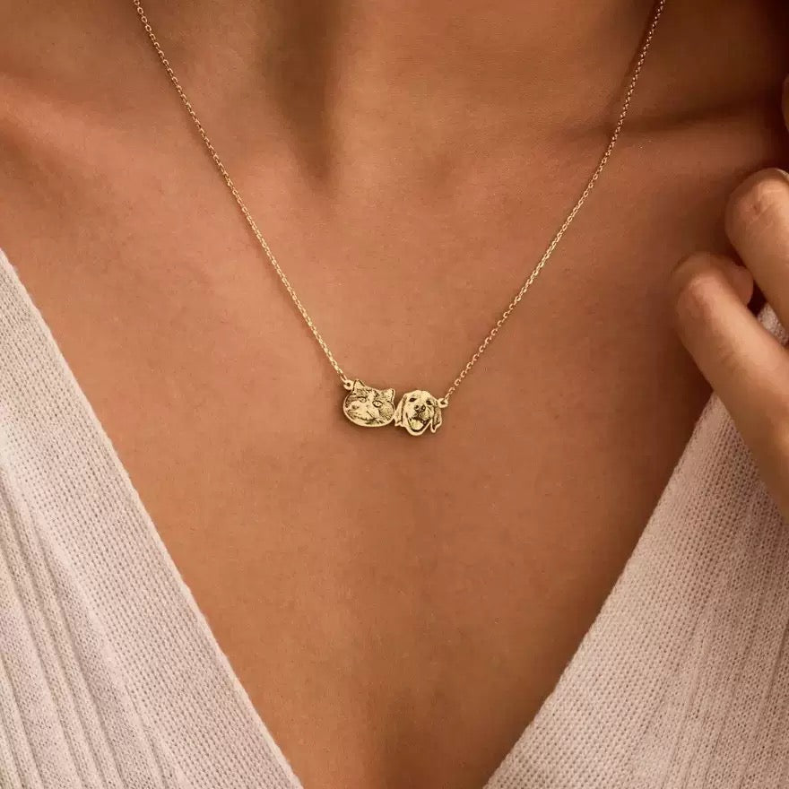 Each necklace is carefully crafted and personalised using your submitted pet photos, transforming them into delicate engraved portraits. Whether you choose one pet or multiple companions, this necklace becomes a timeless keepsake filled with love and memories.