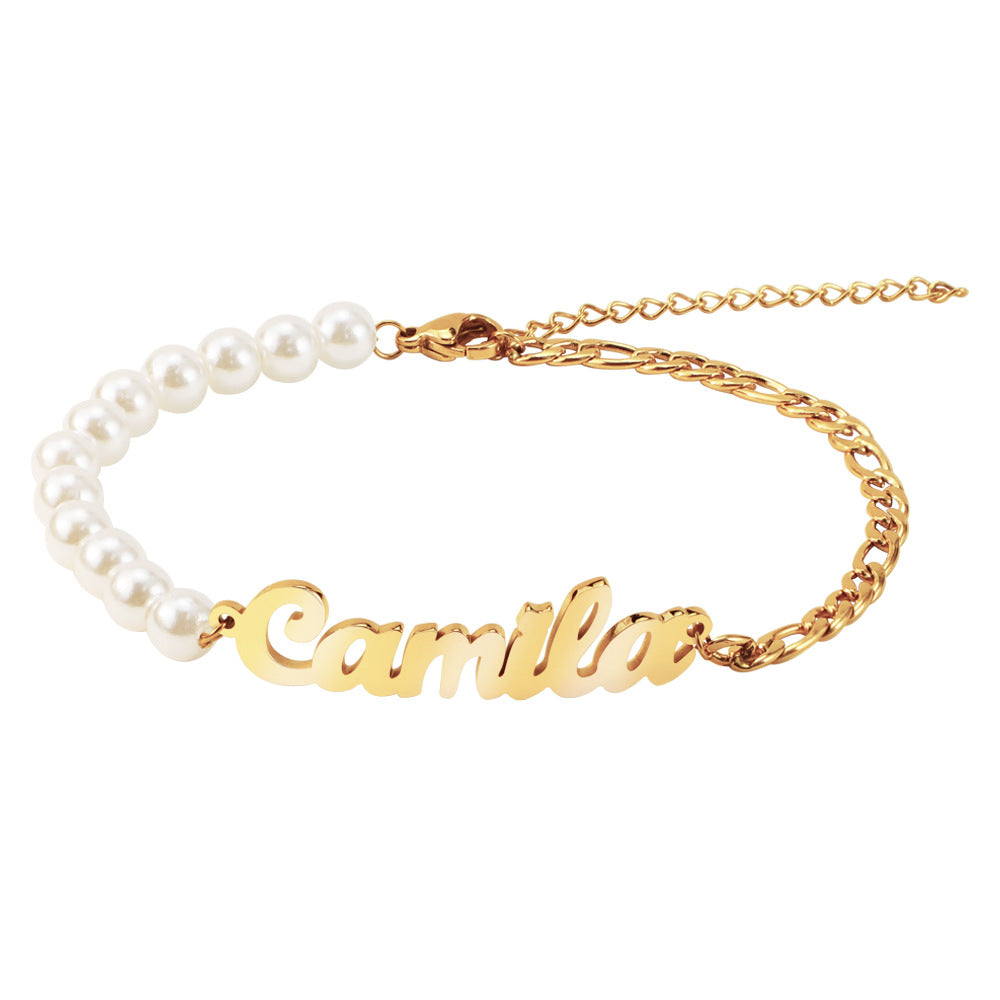 Personalised Name Bracelet – Custom Cut-Out Nameplate with Pearl