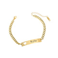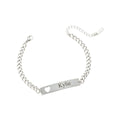 Simple, elegant, and full of meaning — this personalised name bracelet is crafted with a sleek bar design and a delicate cut-out heart, symbolising love and connection. Each bracelet can be engraved with a custom name or meaningful word, making it a timeless keepsake for yourself or a thoughtful gift for someone special.