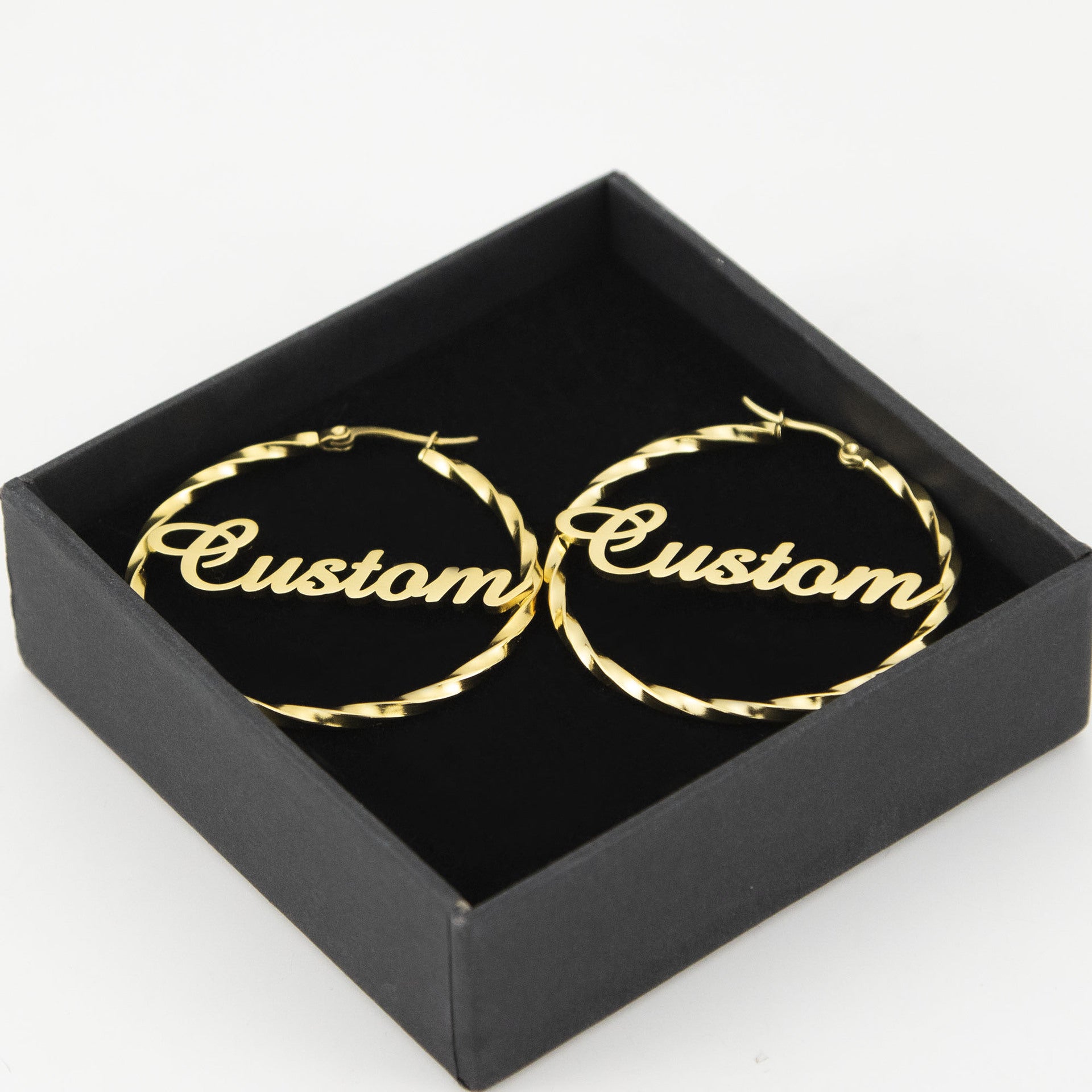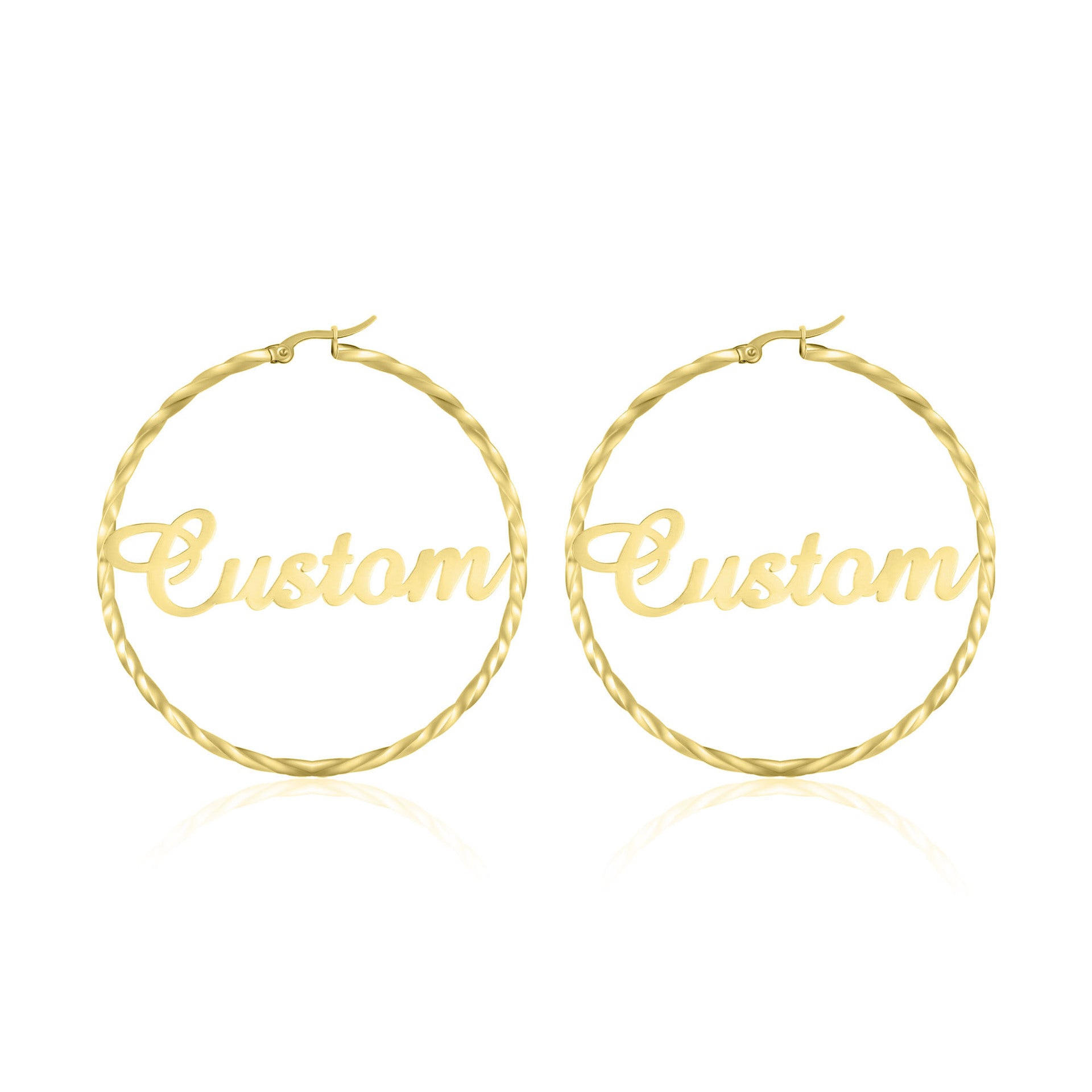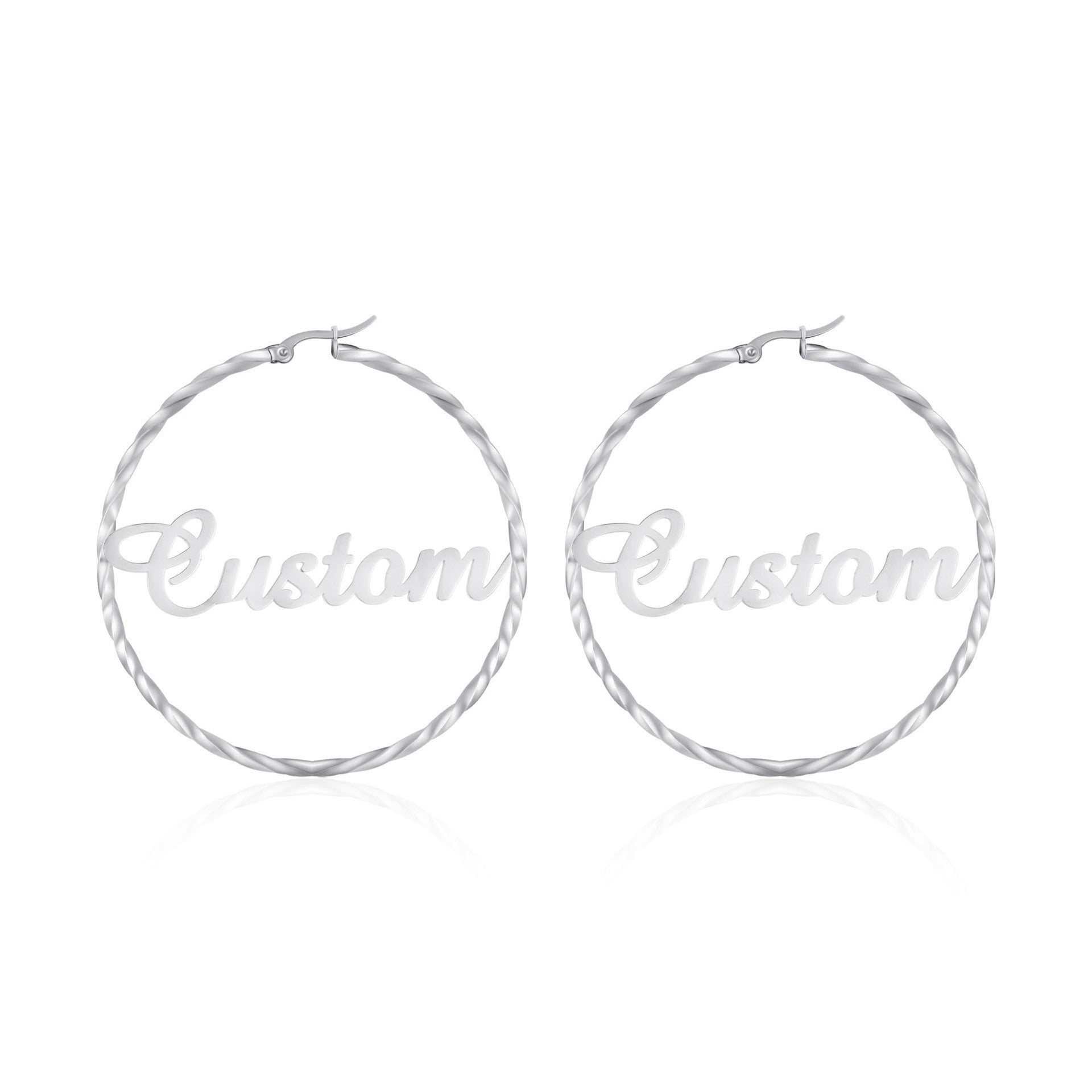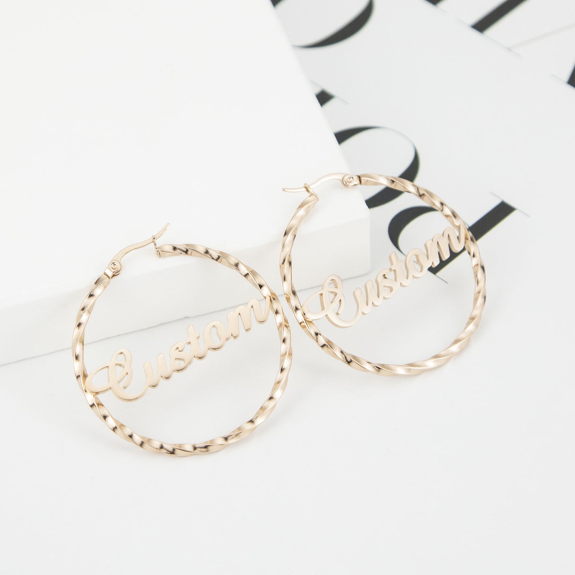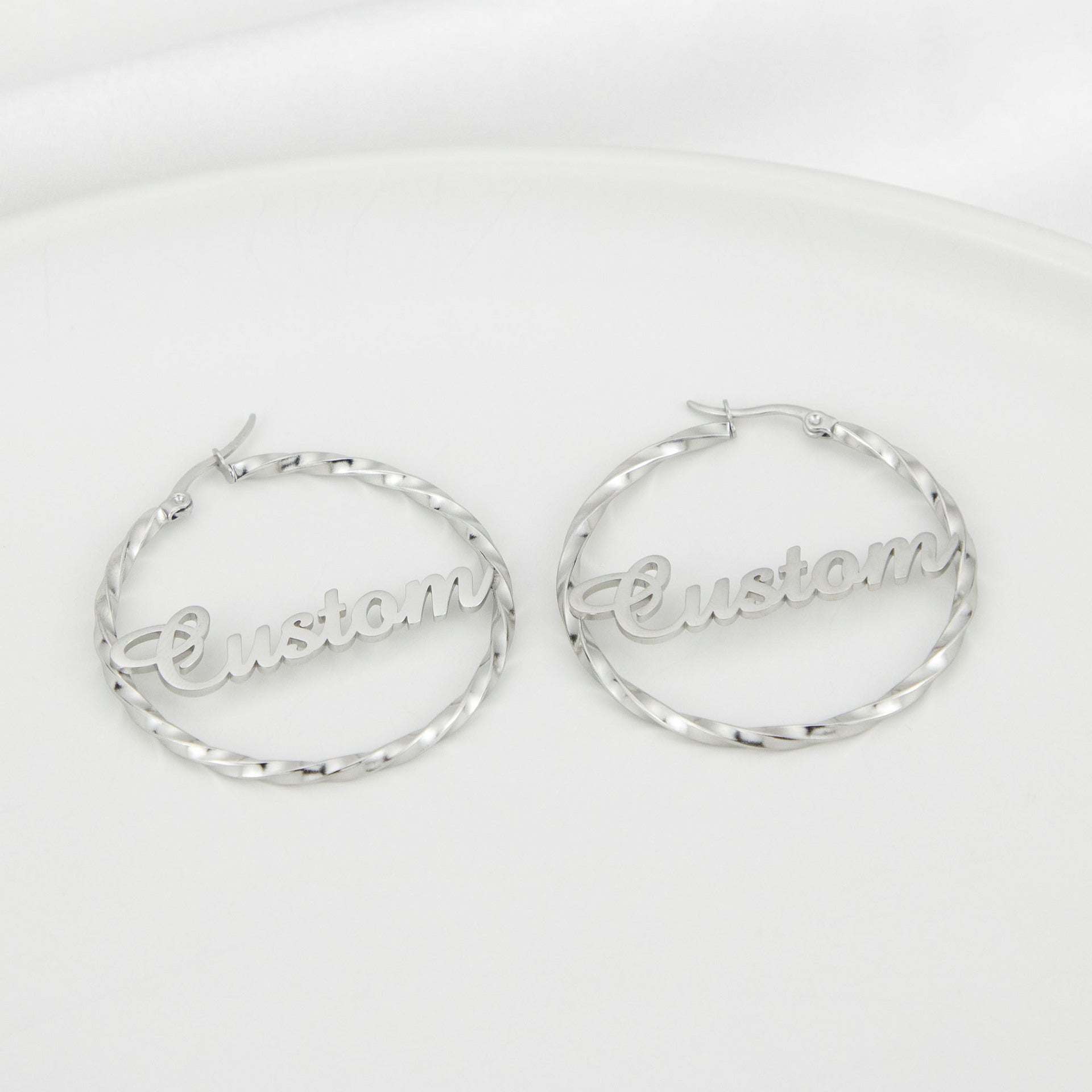Personalised Name Hoop Earrings – Custom Script Twisted Circle Hoops