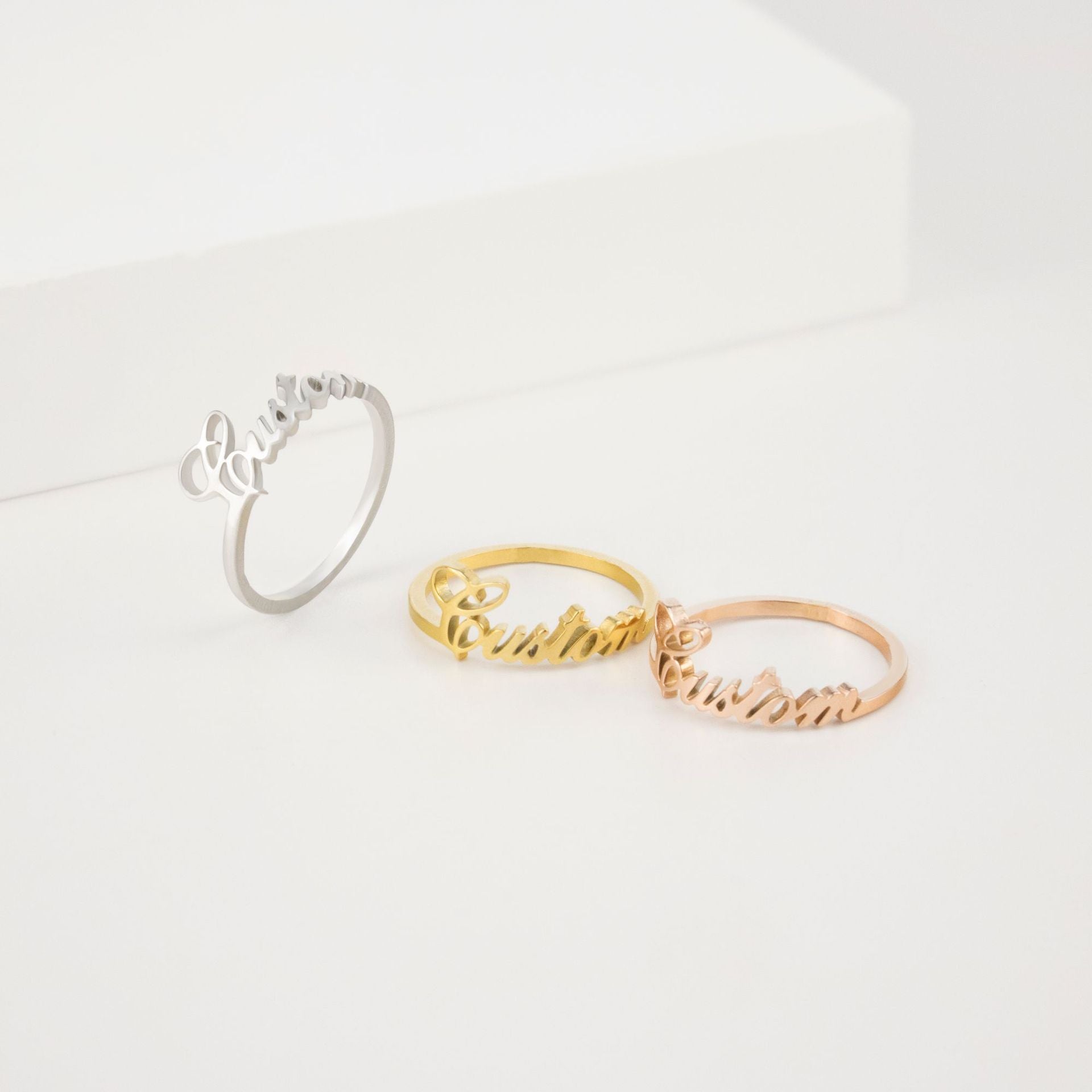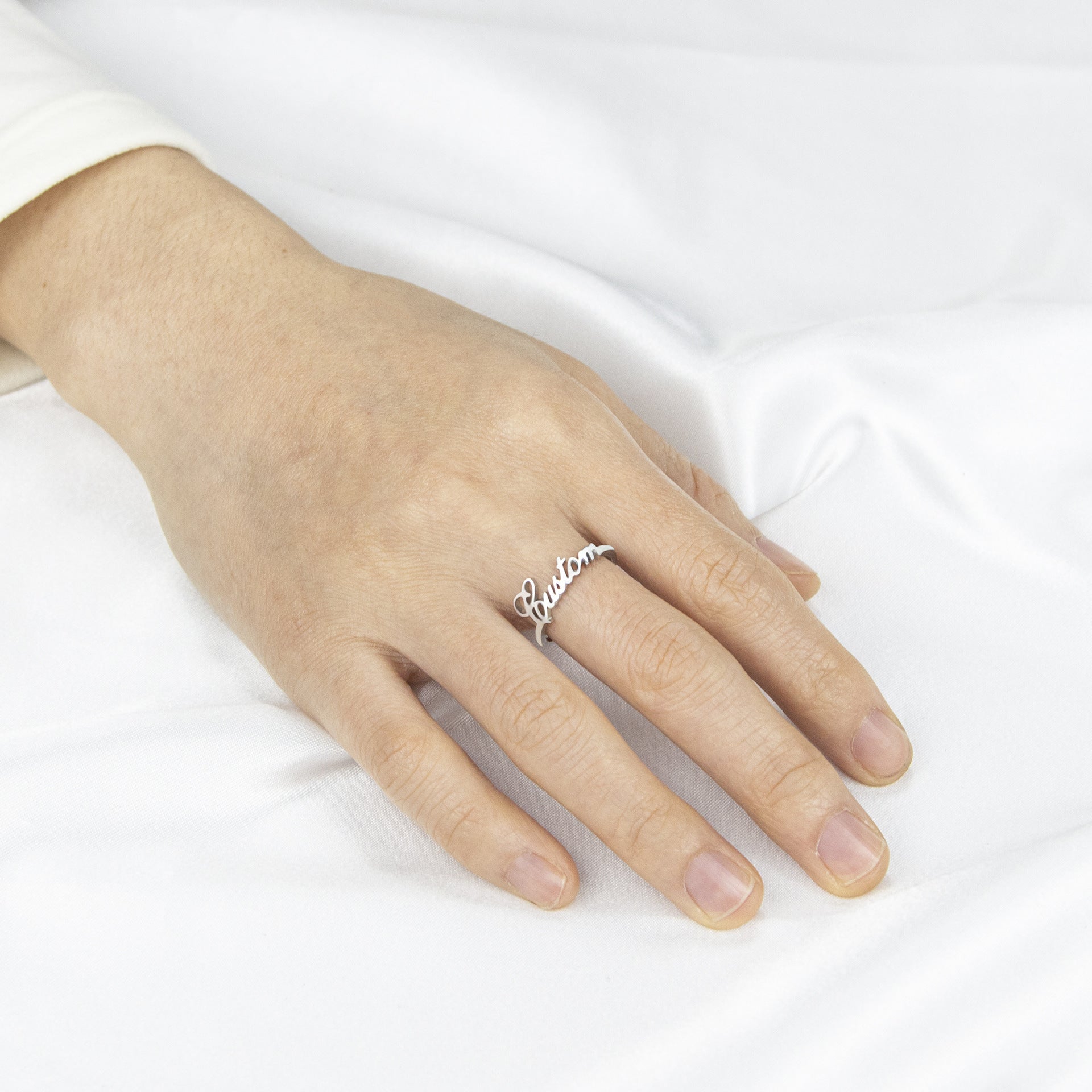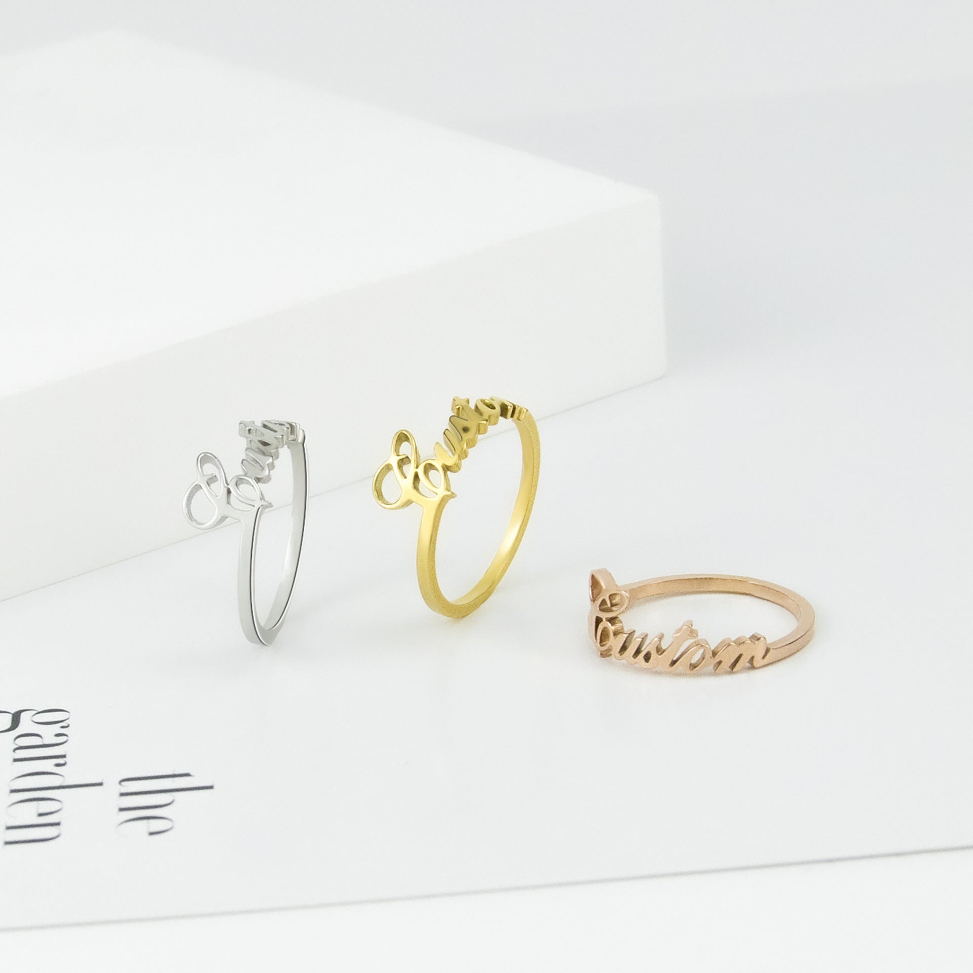 Personalised Name Ring – Custom Stainless Steel Script Ring for Her