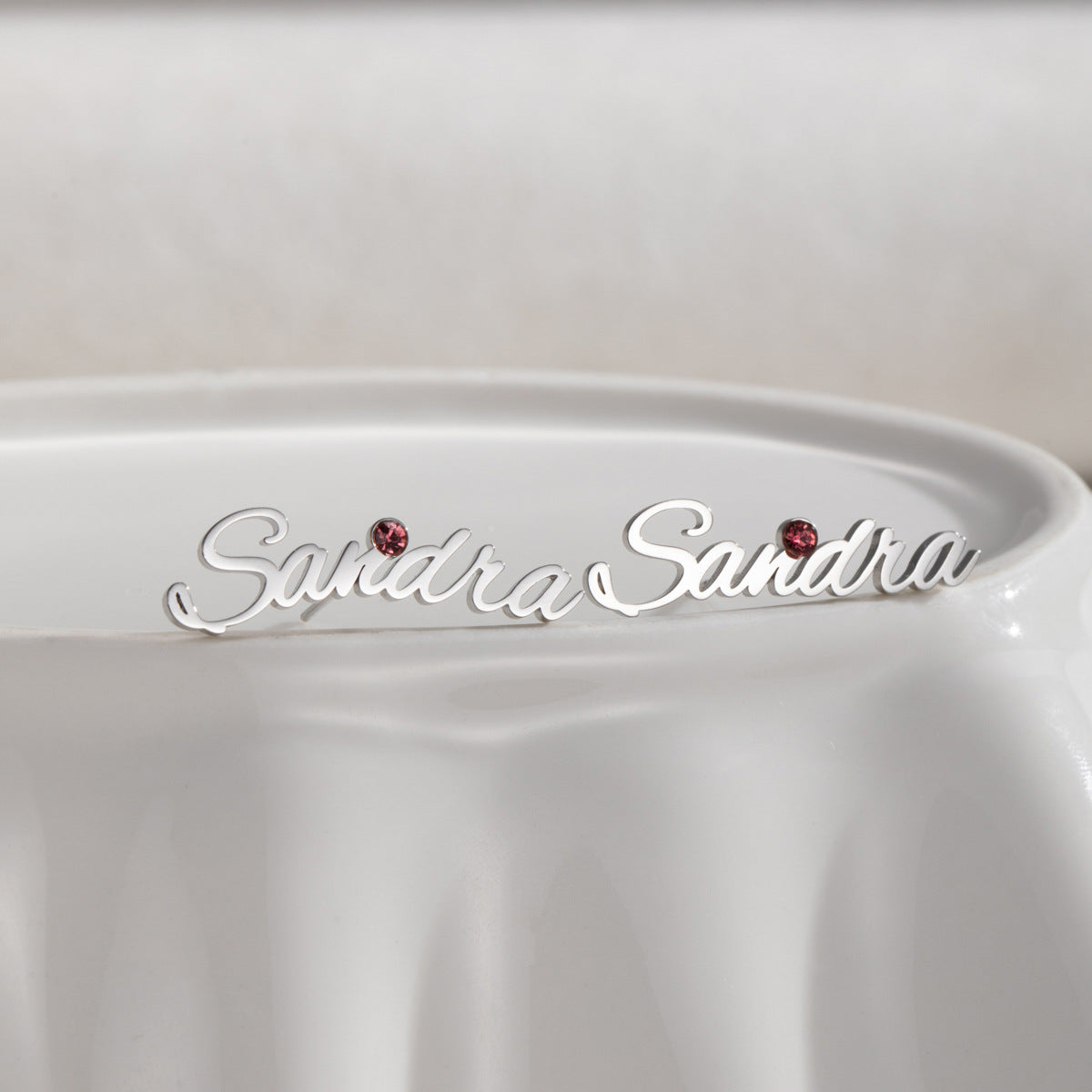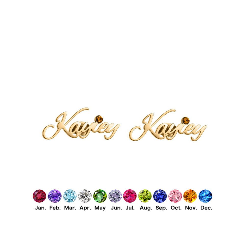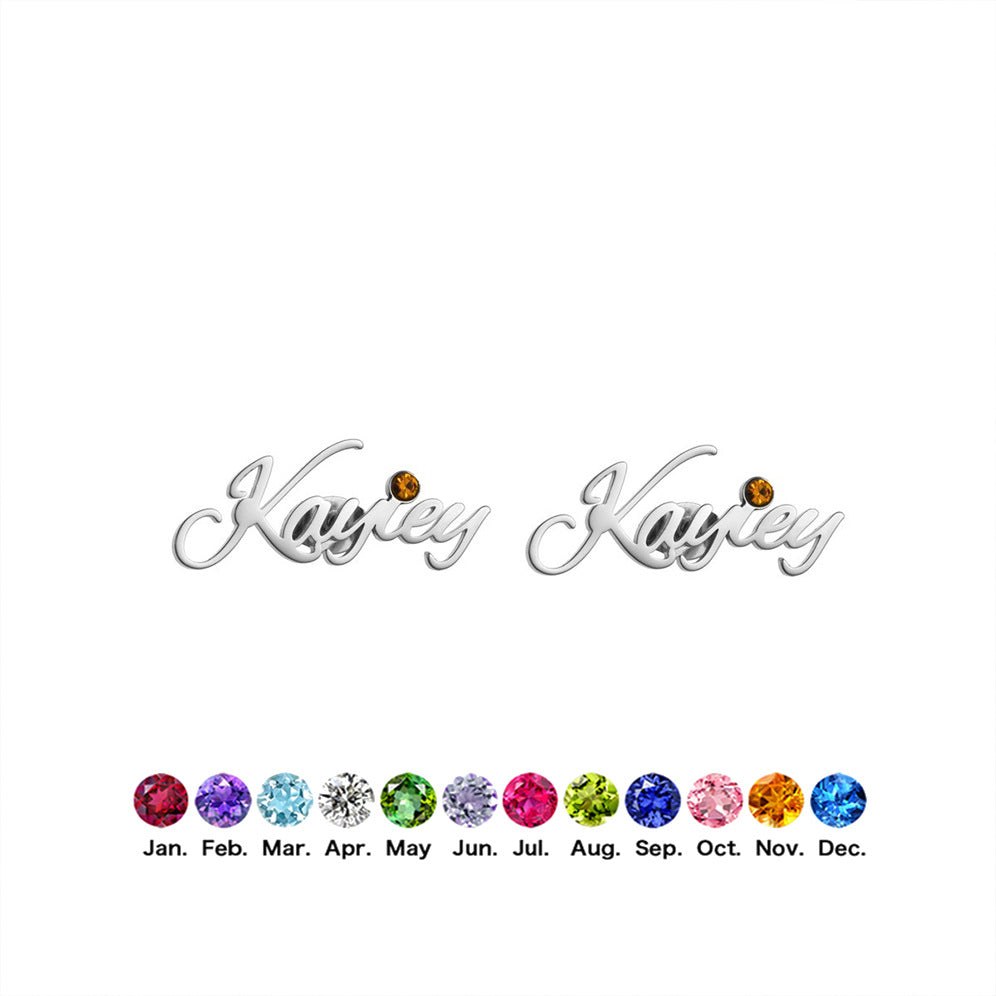 Personalised Name Stud Earrings with Birthstone – Custom Earrings for Her
