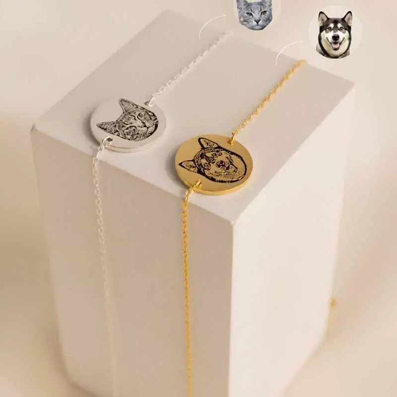 Personalised Pet Photo Bracelet – Custom Pet Portrait & Name Engraved