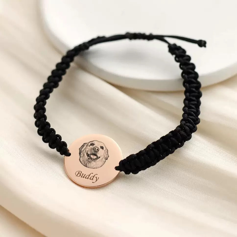 Personalised Pet Photo Cord Bracelet – Custom Name Engraved