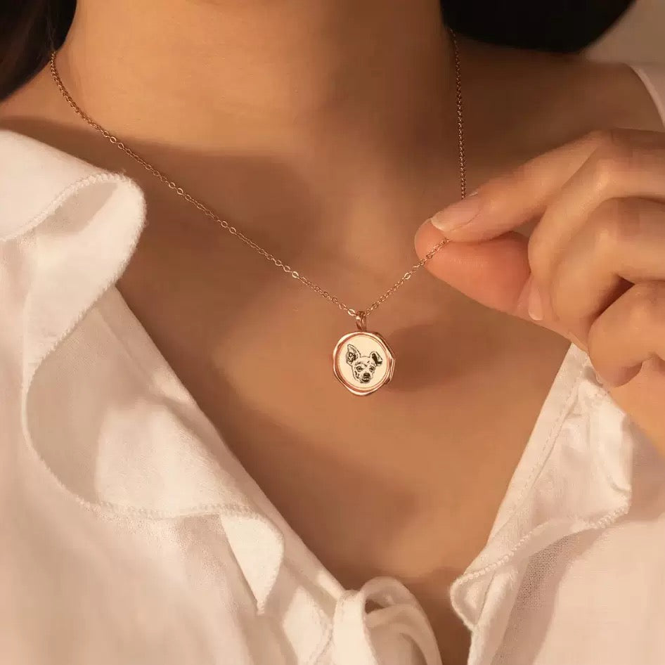 Celebrate your pet’s unique personality with our Personalised Pet Portrait Wax Seal Necklace — a beautifully designed keepsake inspired by the timeless elegance of wax seal jewellery.